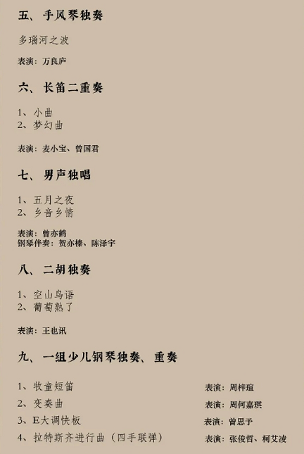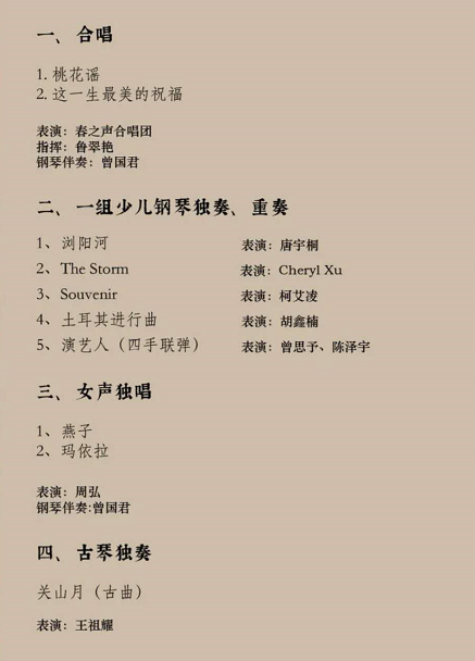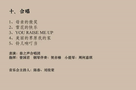 2, 由于本次是音乐会,大多数节目不用麦克和音响设备,所以需要现场保持安静。