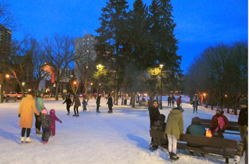 在室外溜冰场上,与Meewasin一起欢呼新年,欣赏城市美景!