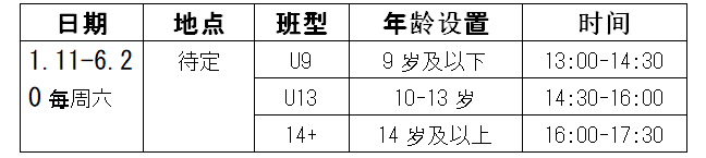2、U13组:10-13岁(男女生均可报名,同组训练)