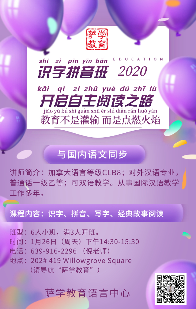 地点: 202# 419 Willowgrove Square 导航:萨学教育