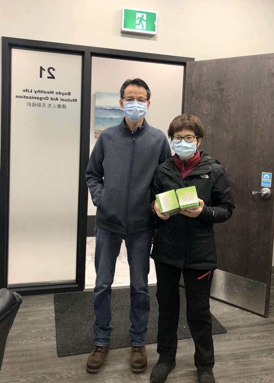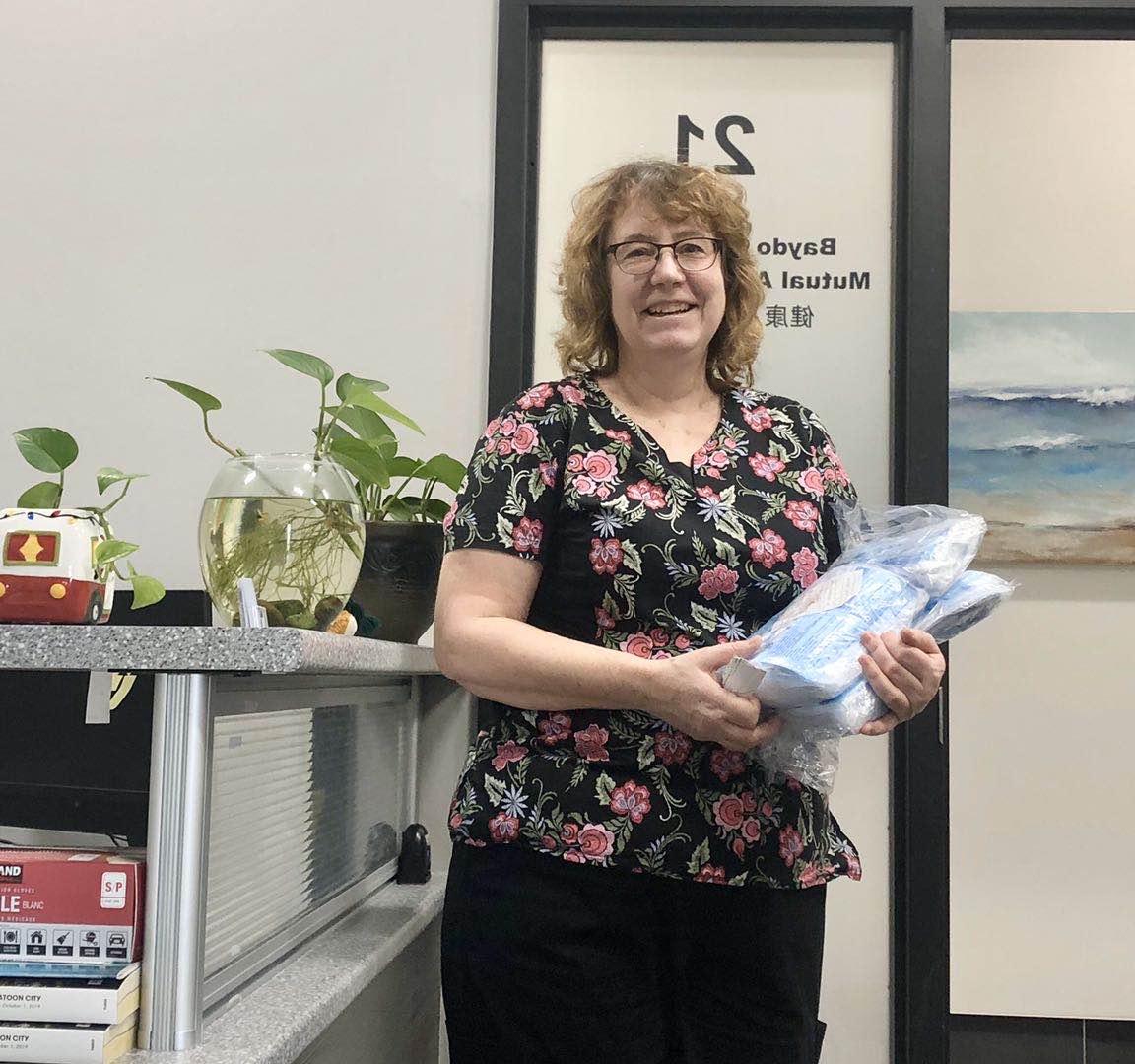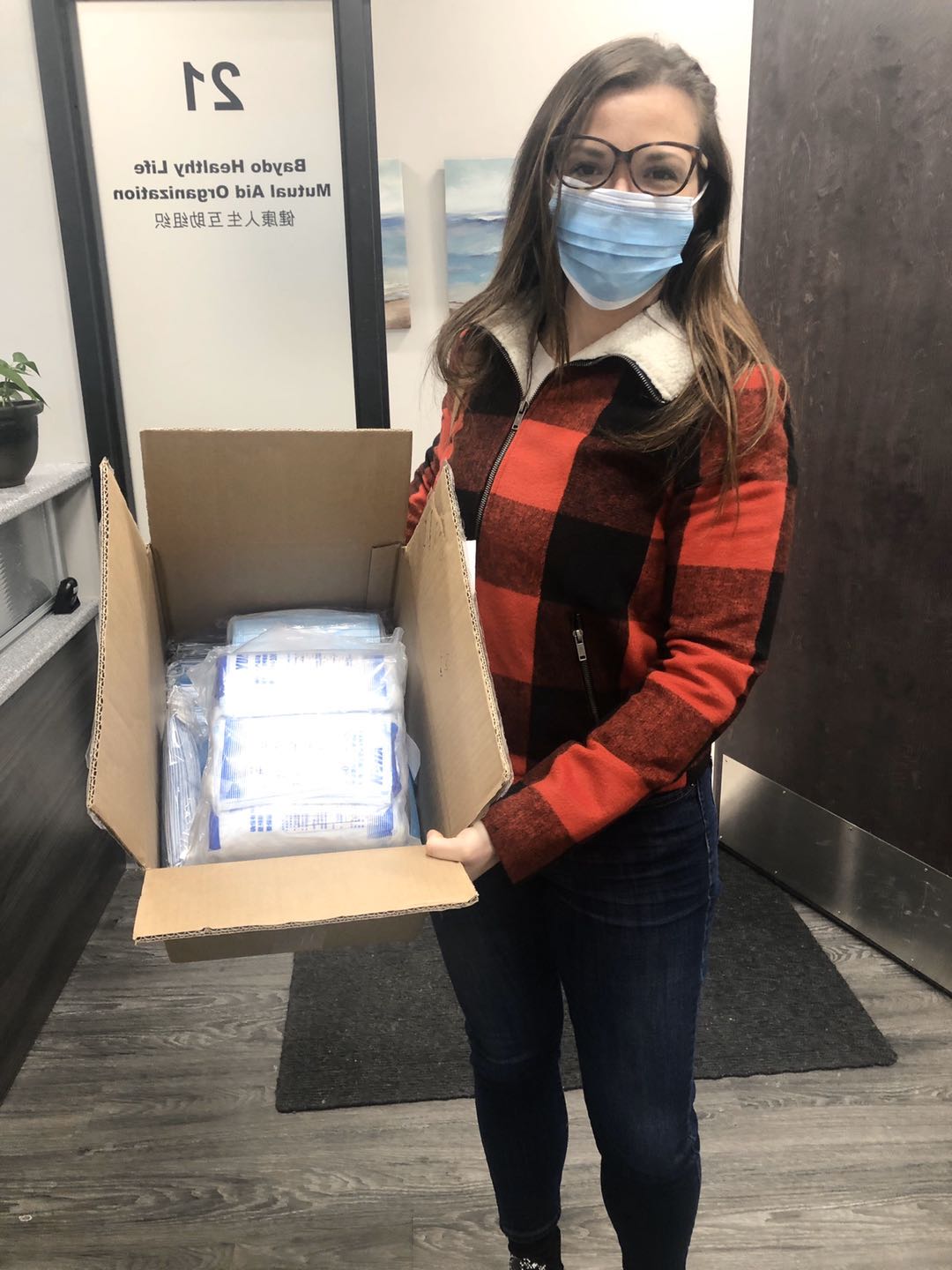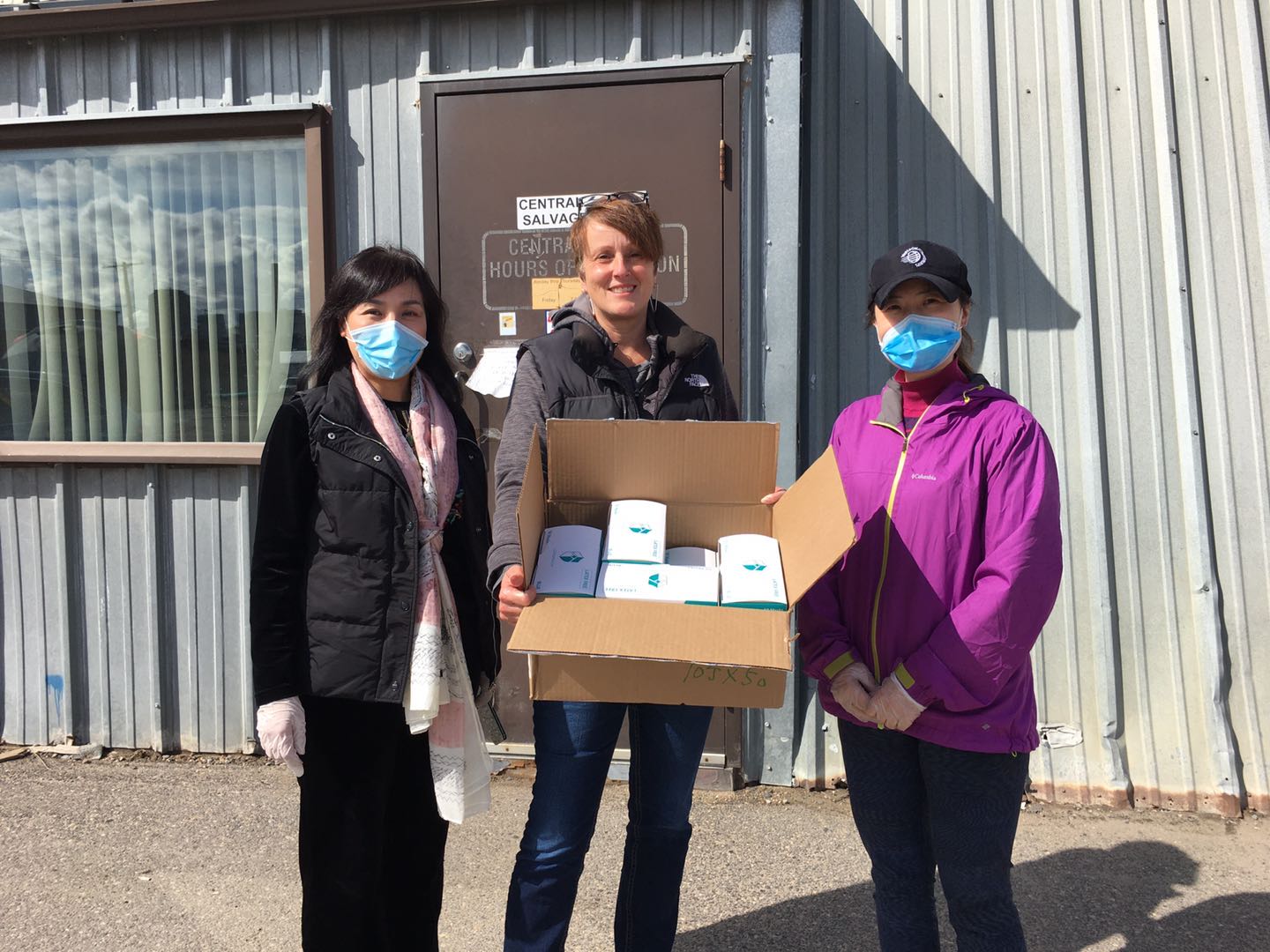 18、4月12日,再次捐助萨斯卡通Open Door医用口罩300个,工作人员郭蓉女士前来领取 :