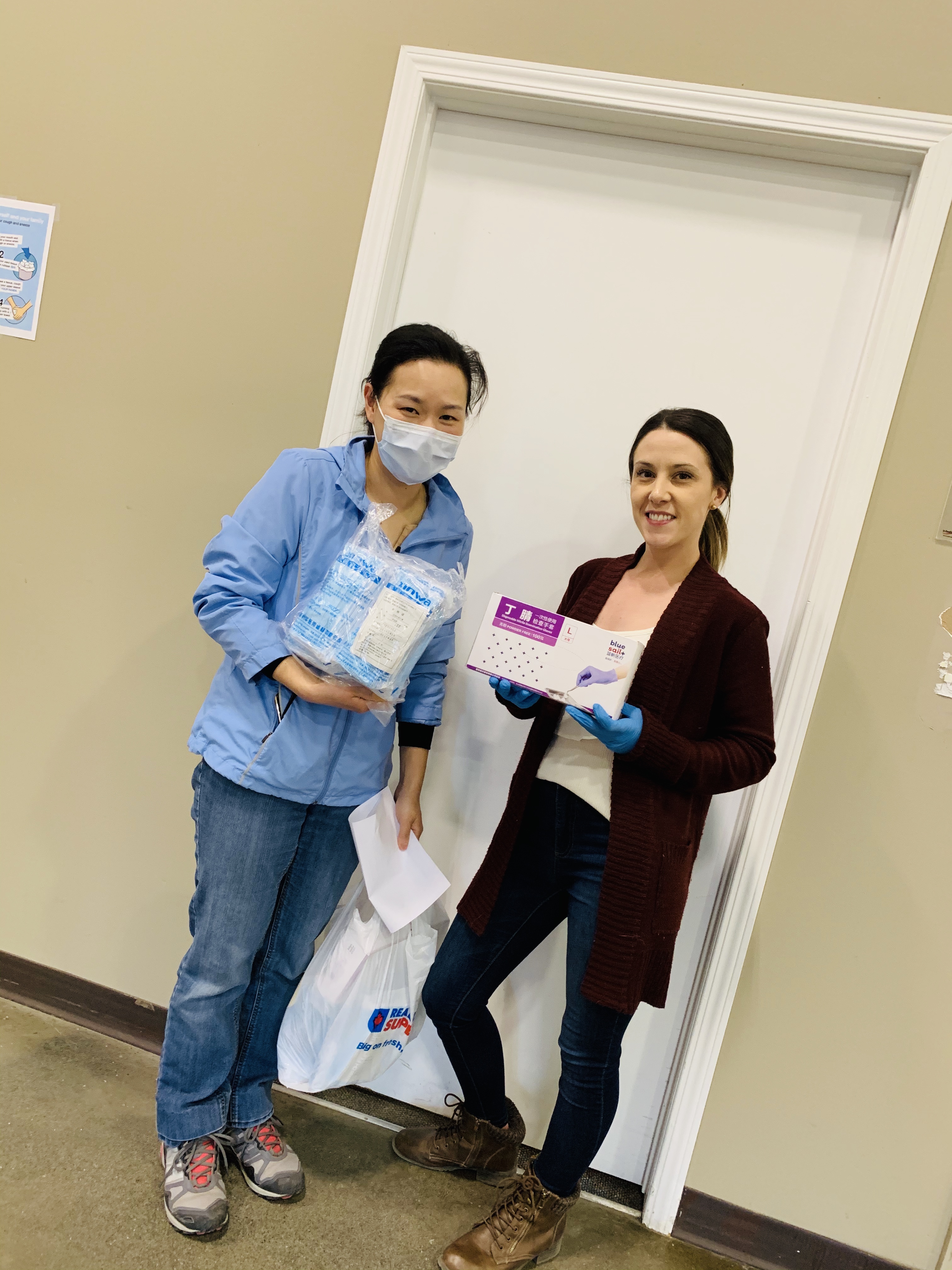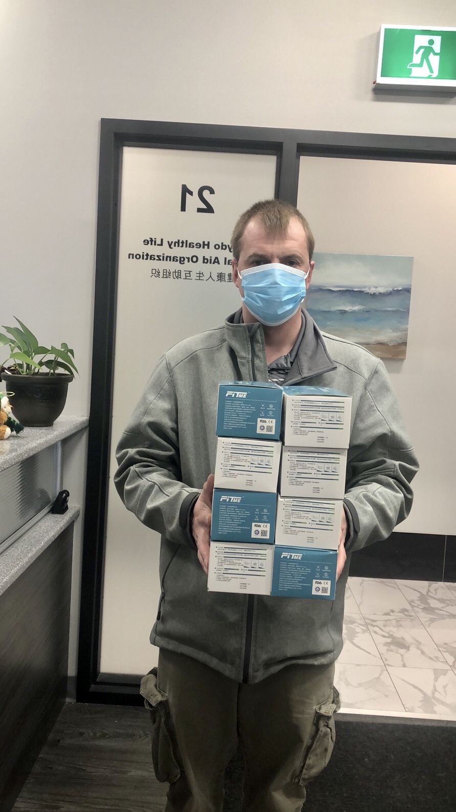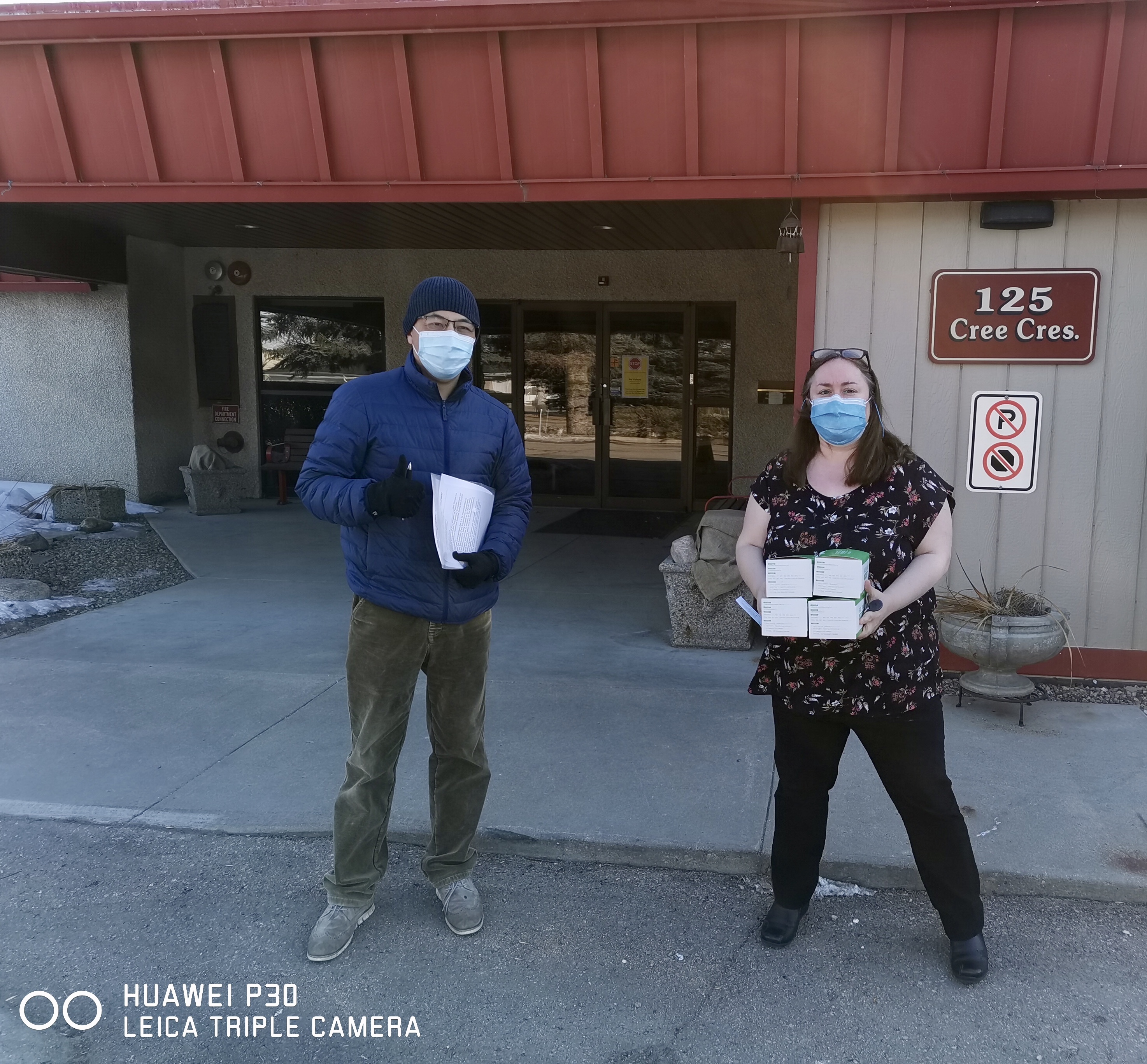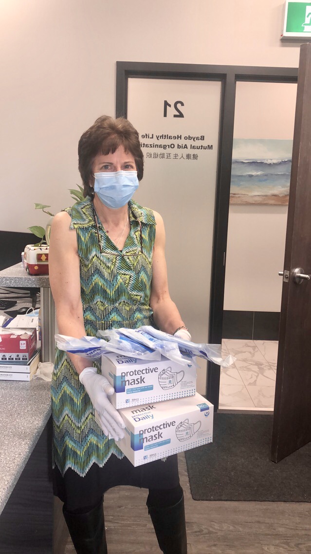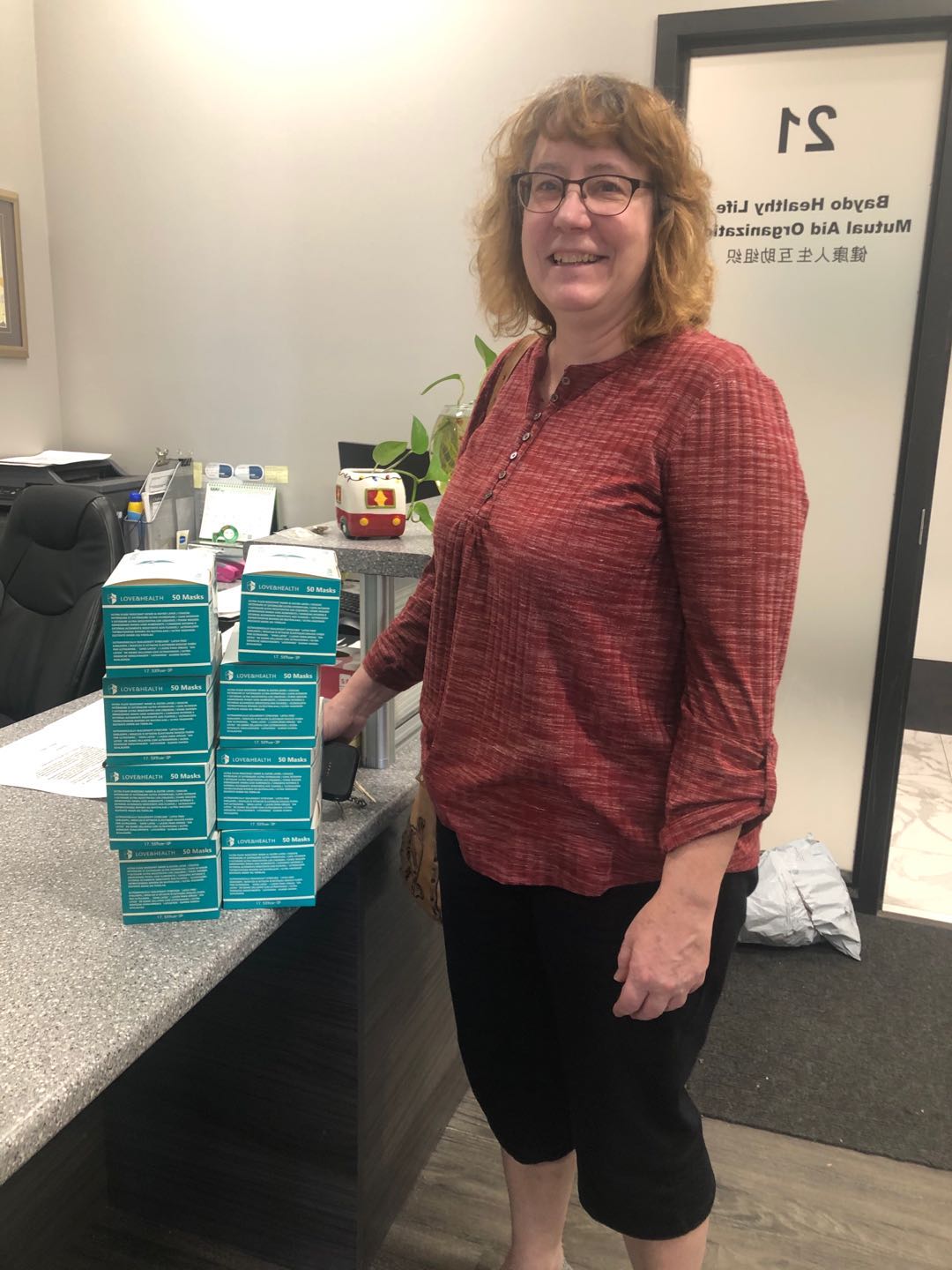 18、4月12日,再次捐助萨斯卡通Open Door医用口罩300个,工作人员郭蓉女士前来领取 :