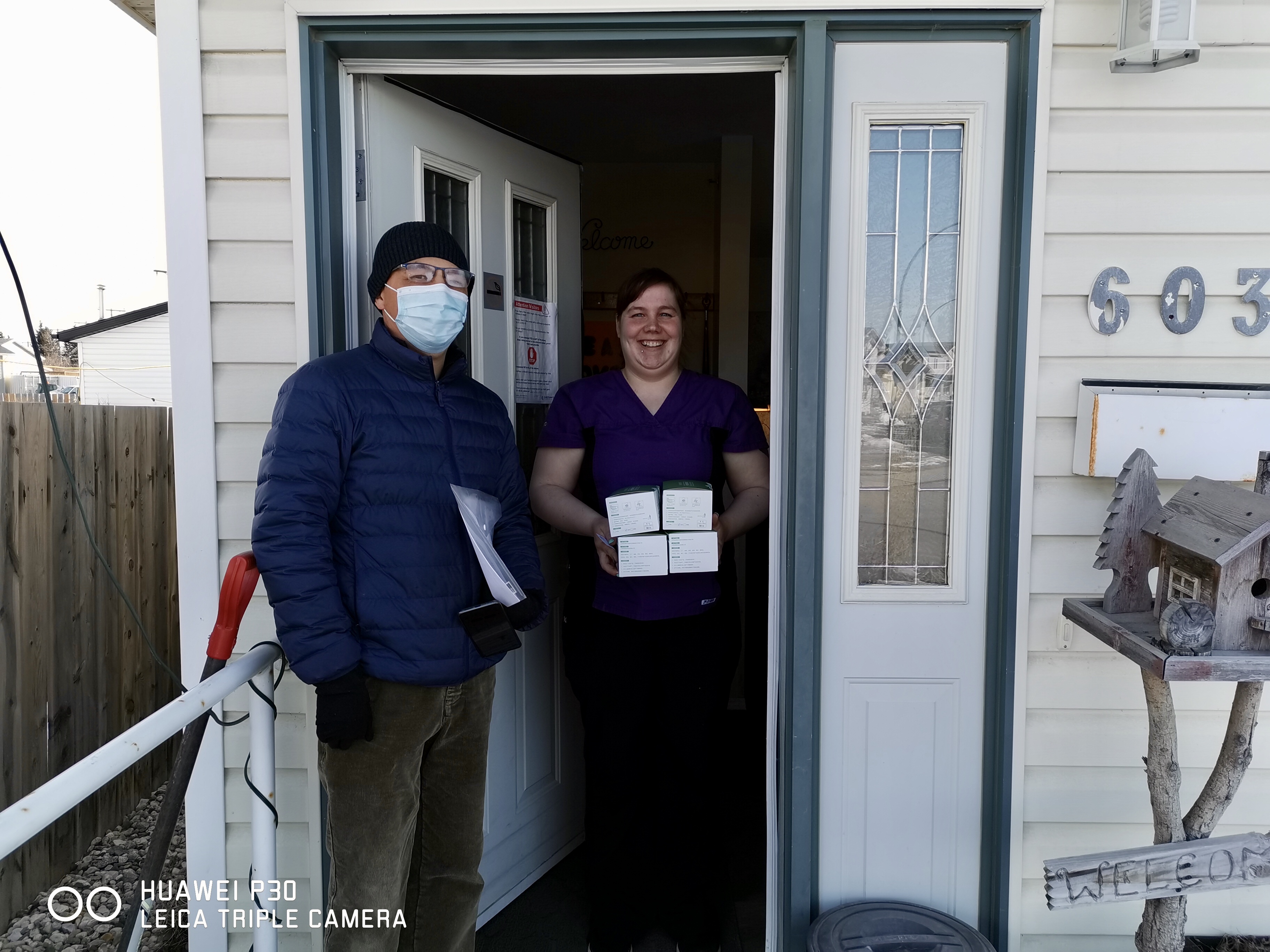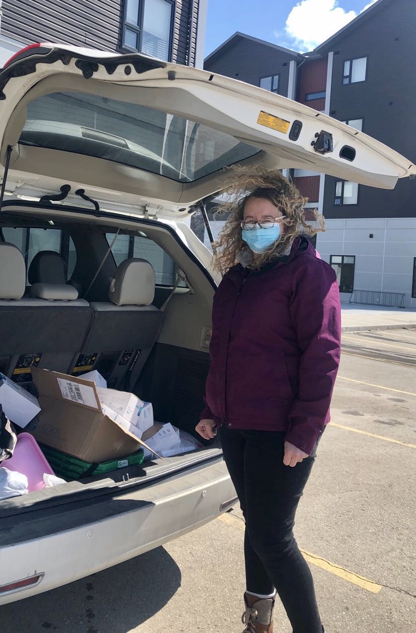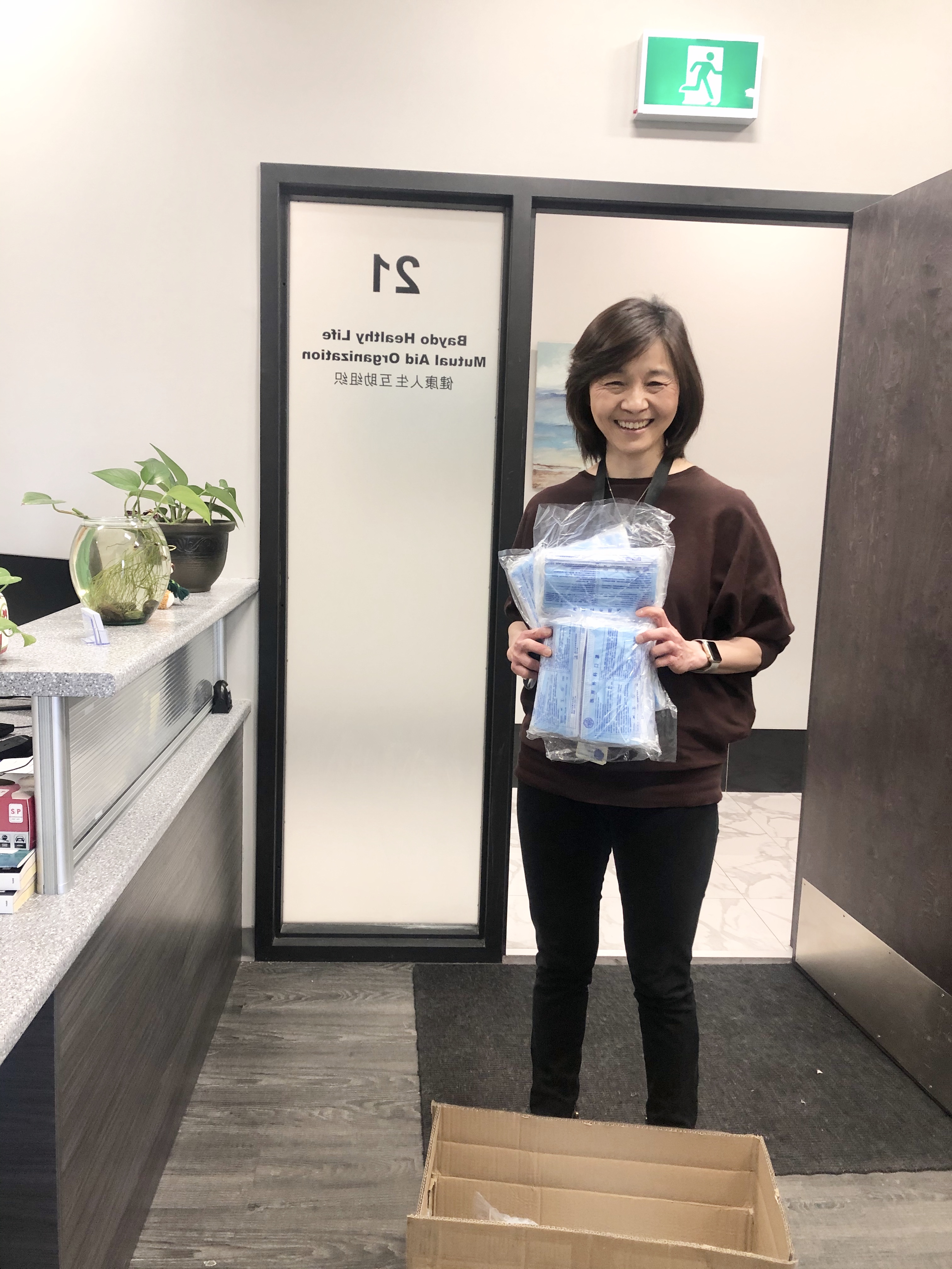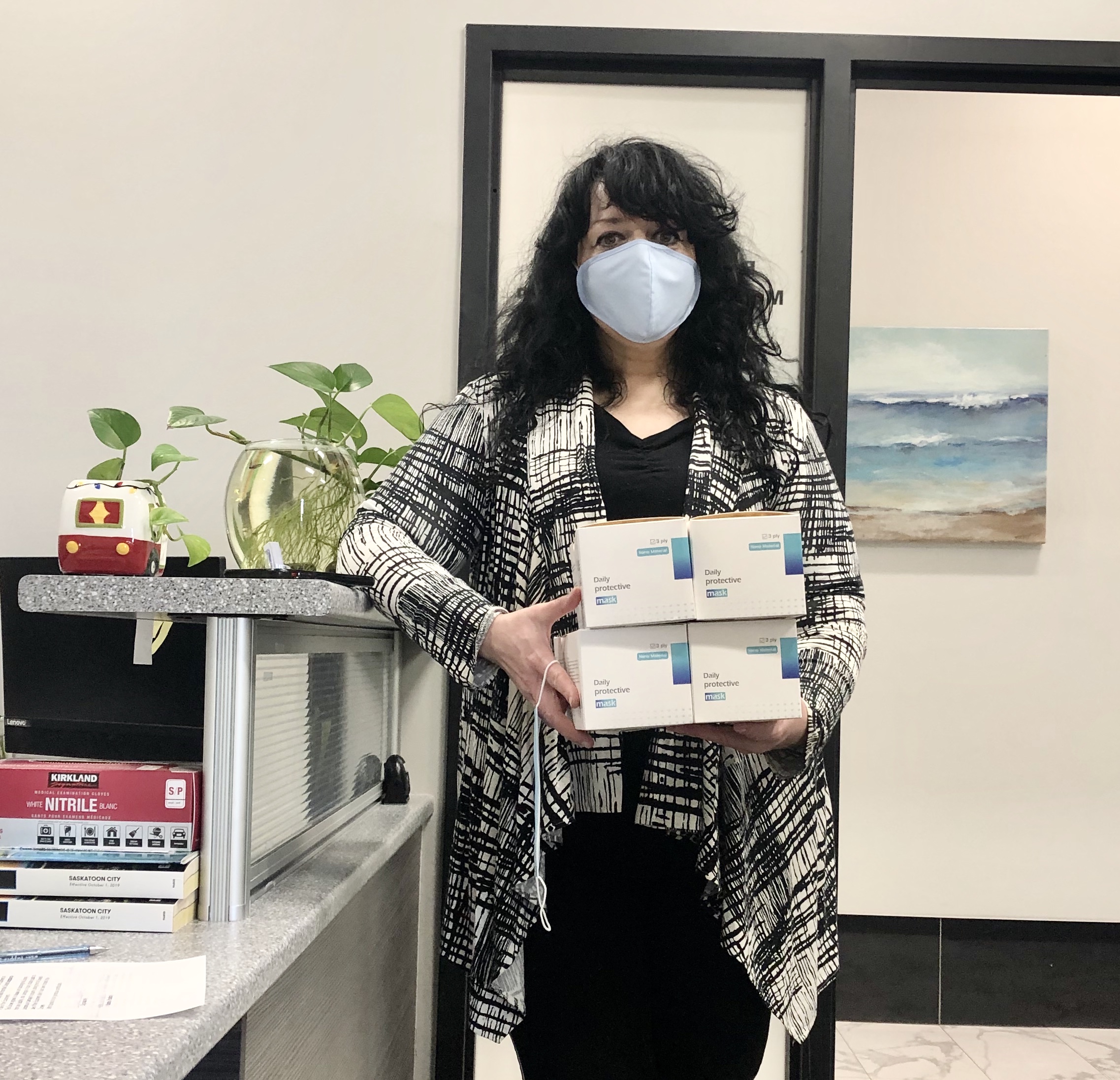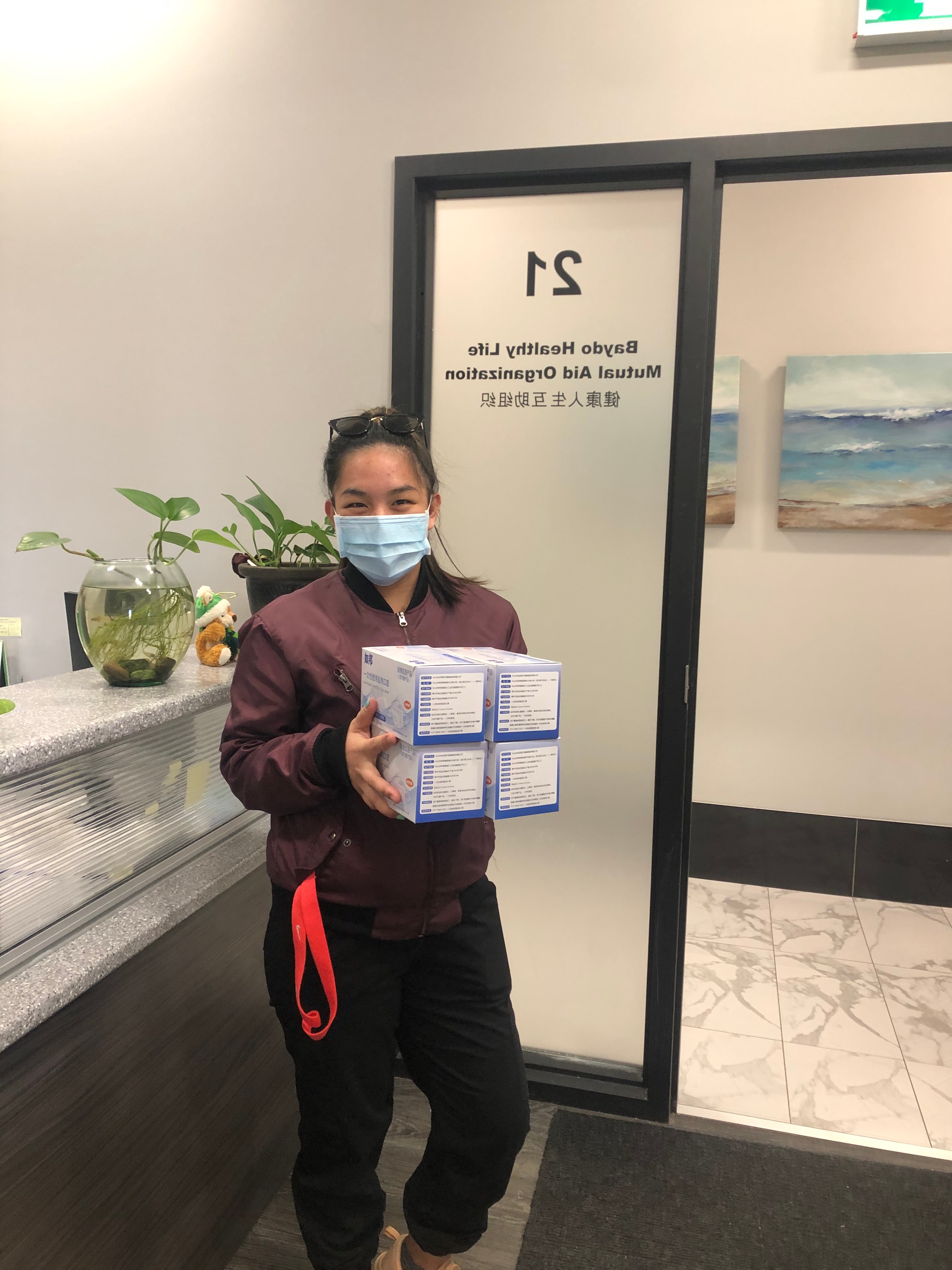 18、4月12日,再次捐助萨斯卡通Open Door医用口罩300个,工作人员郭蓉女士前来领取 :