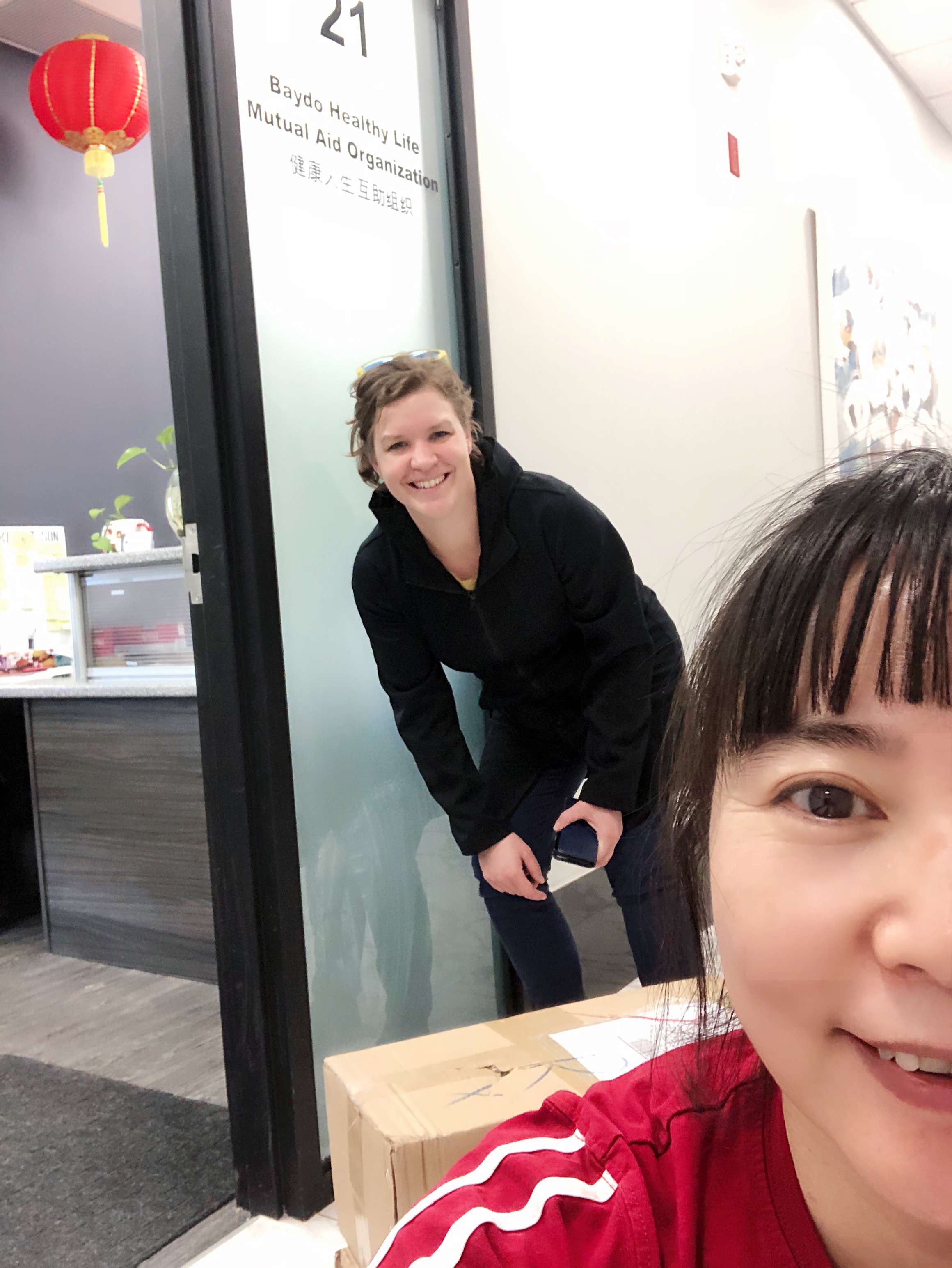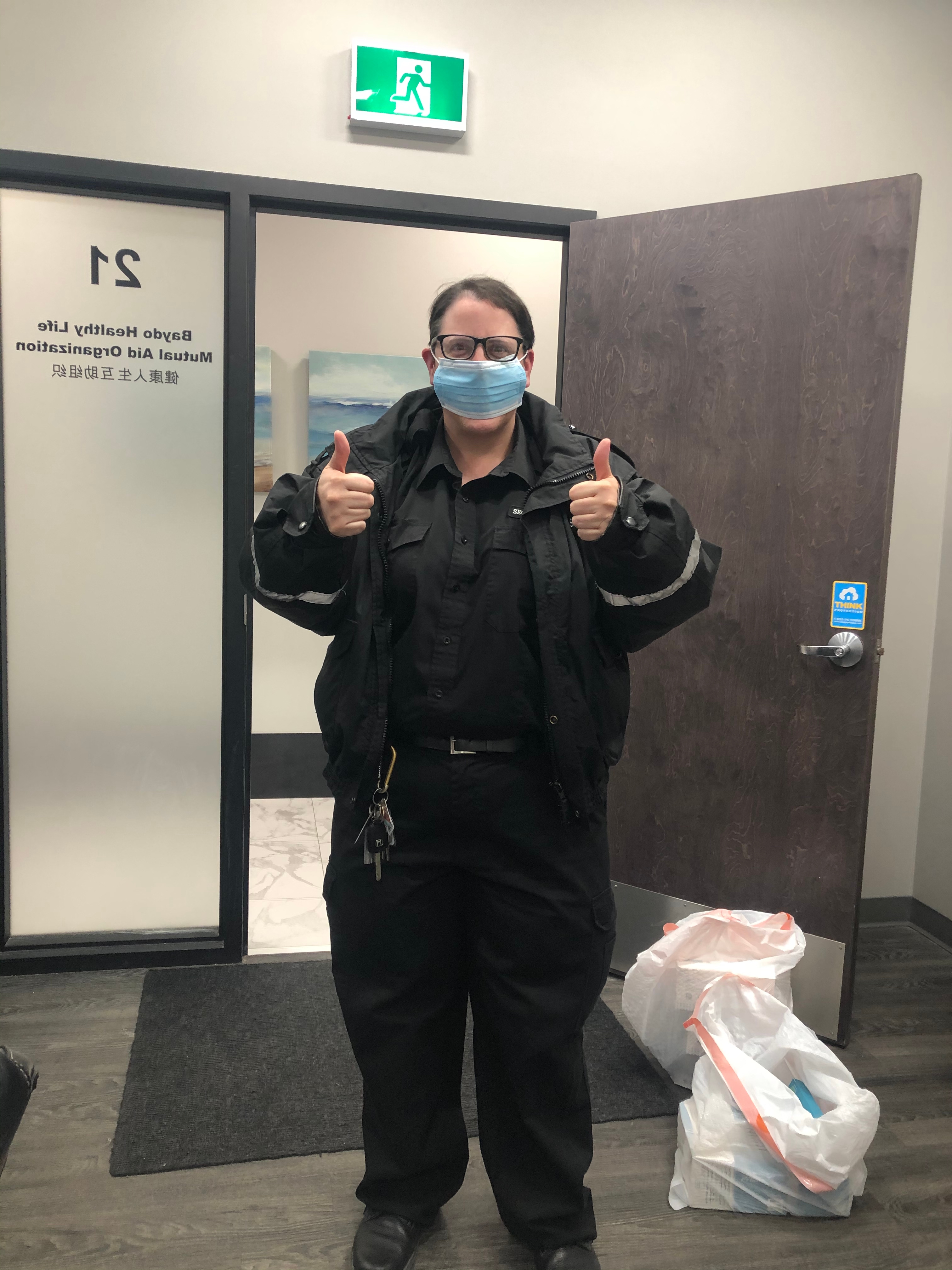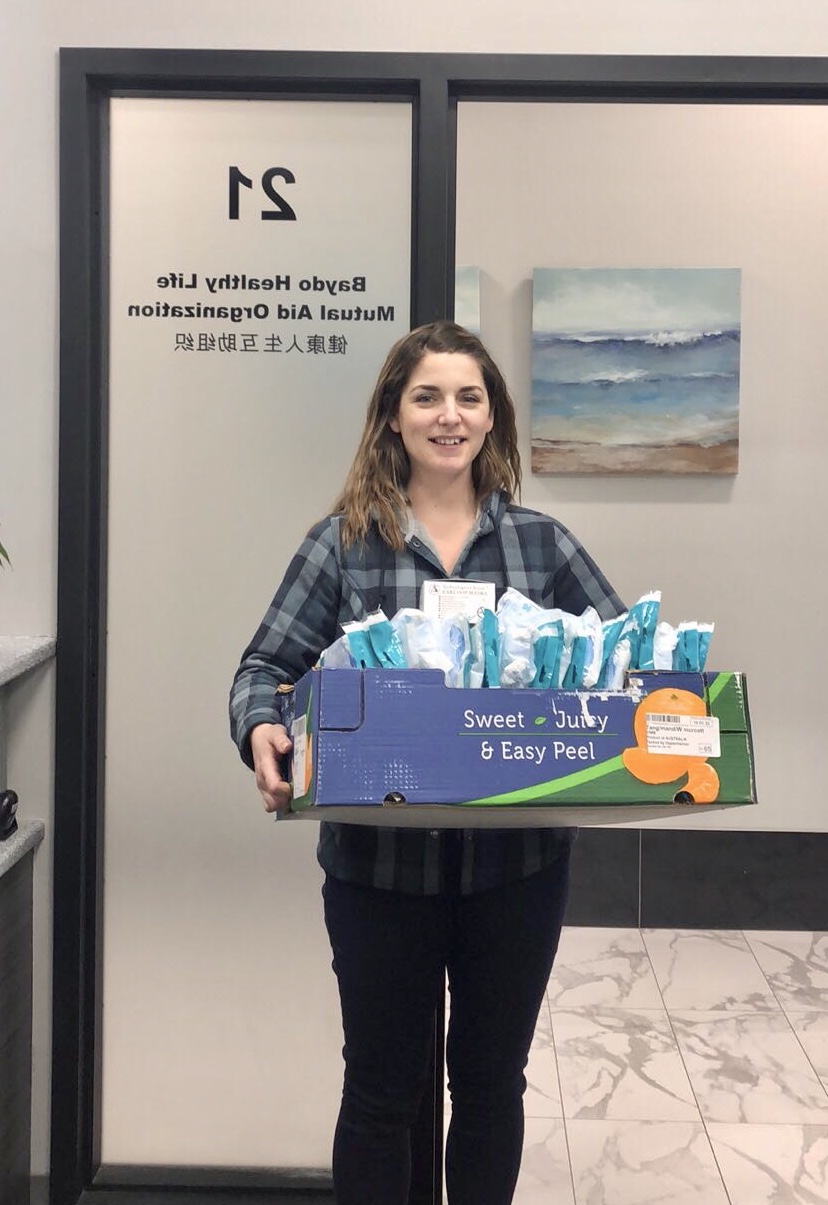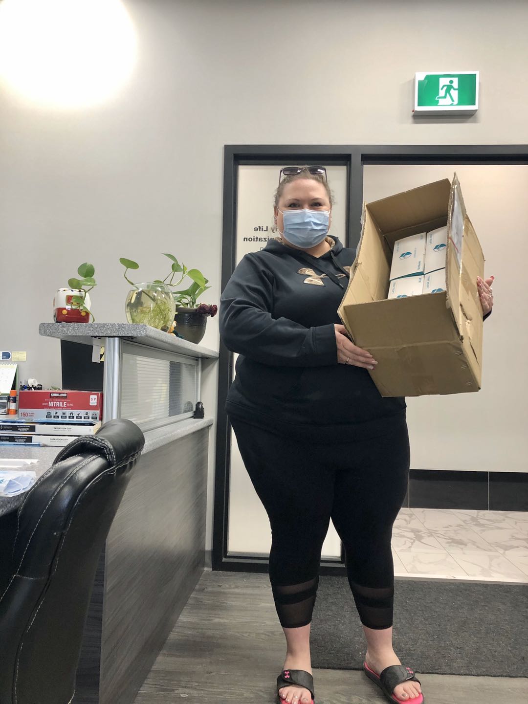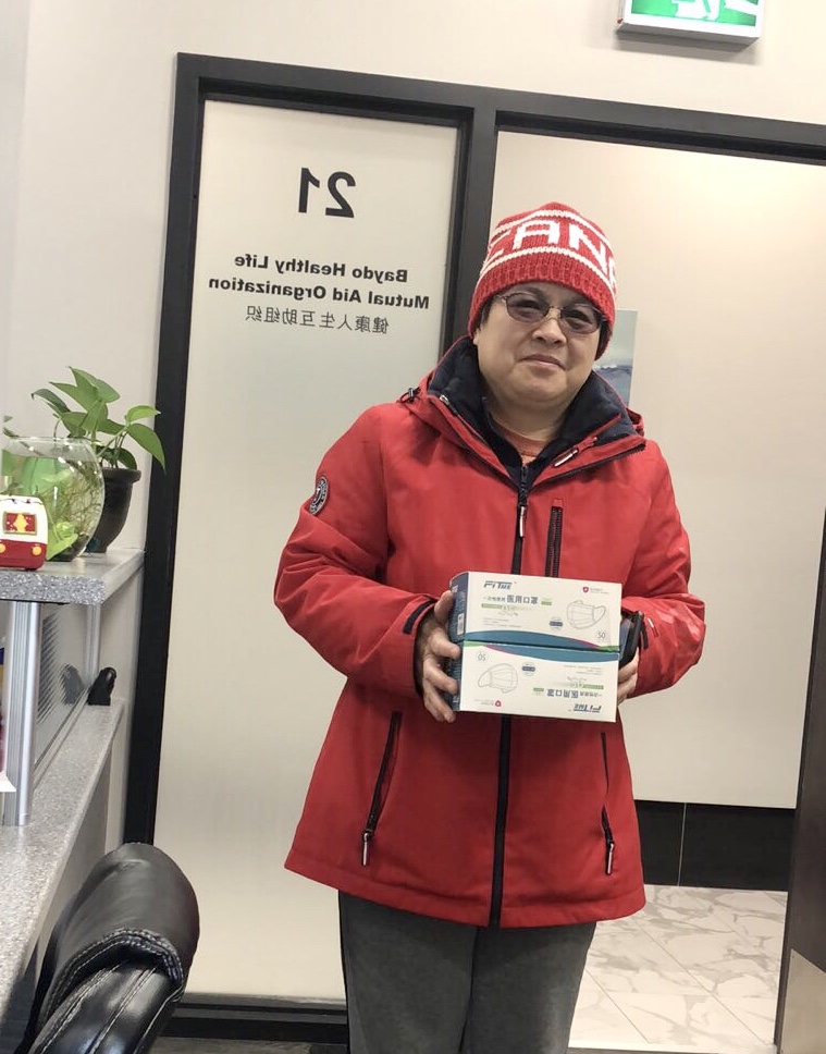 18、4月12日,再次捐助萨斯卡通Open Door医用口罩300个,工作人员郭蓉女士前来领取 :