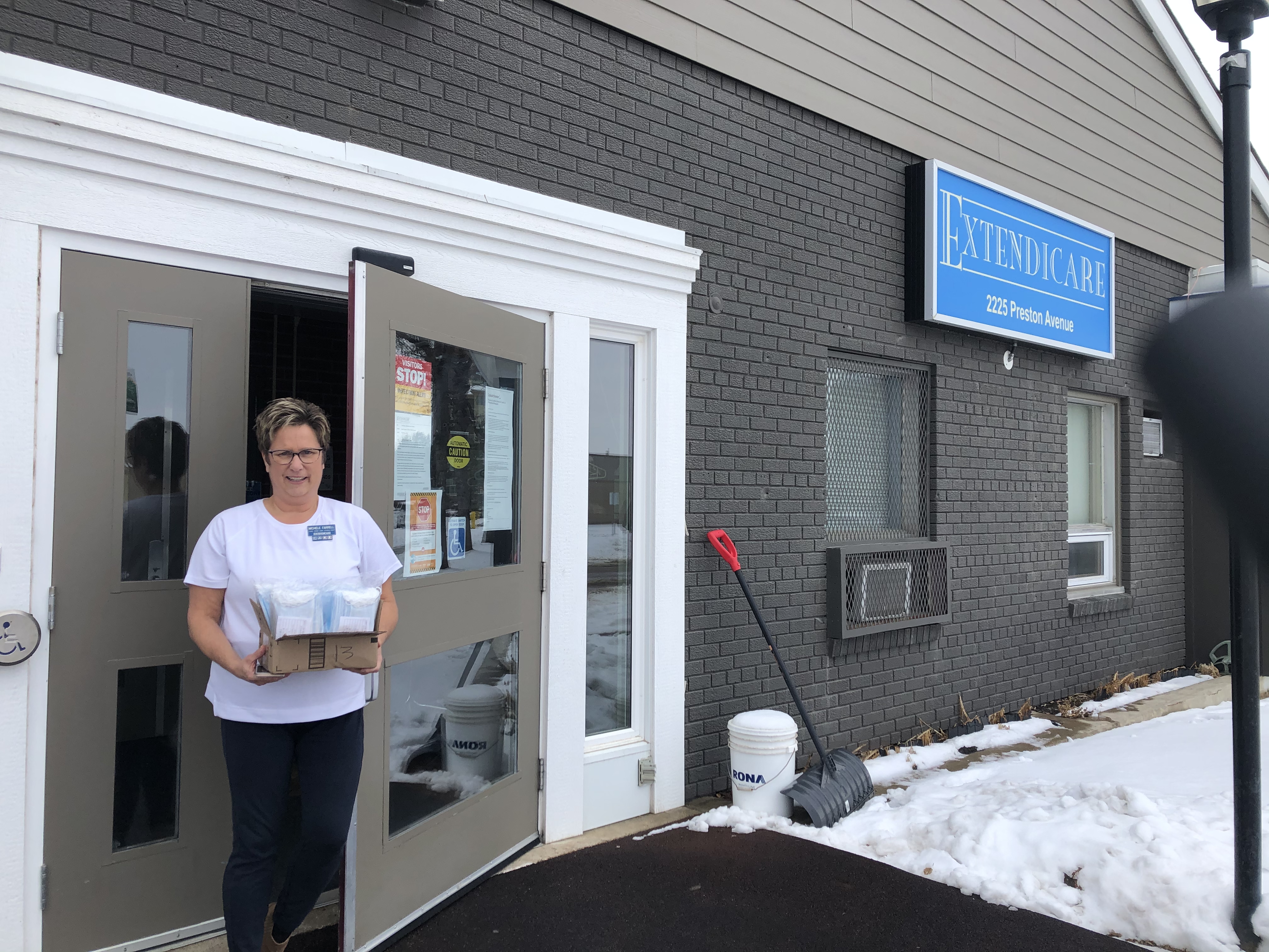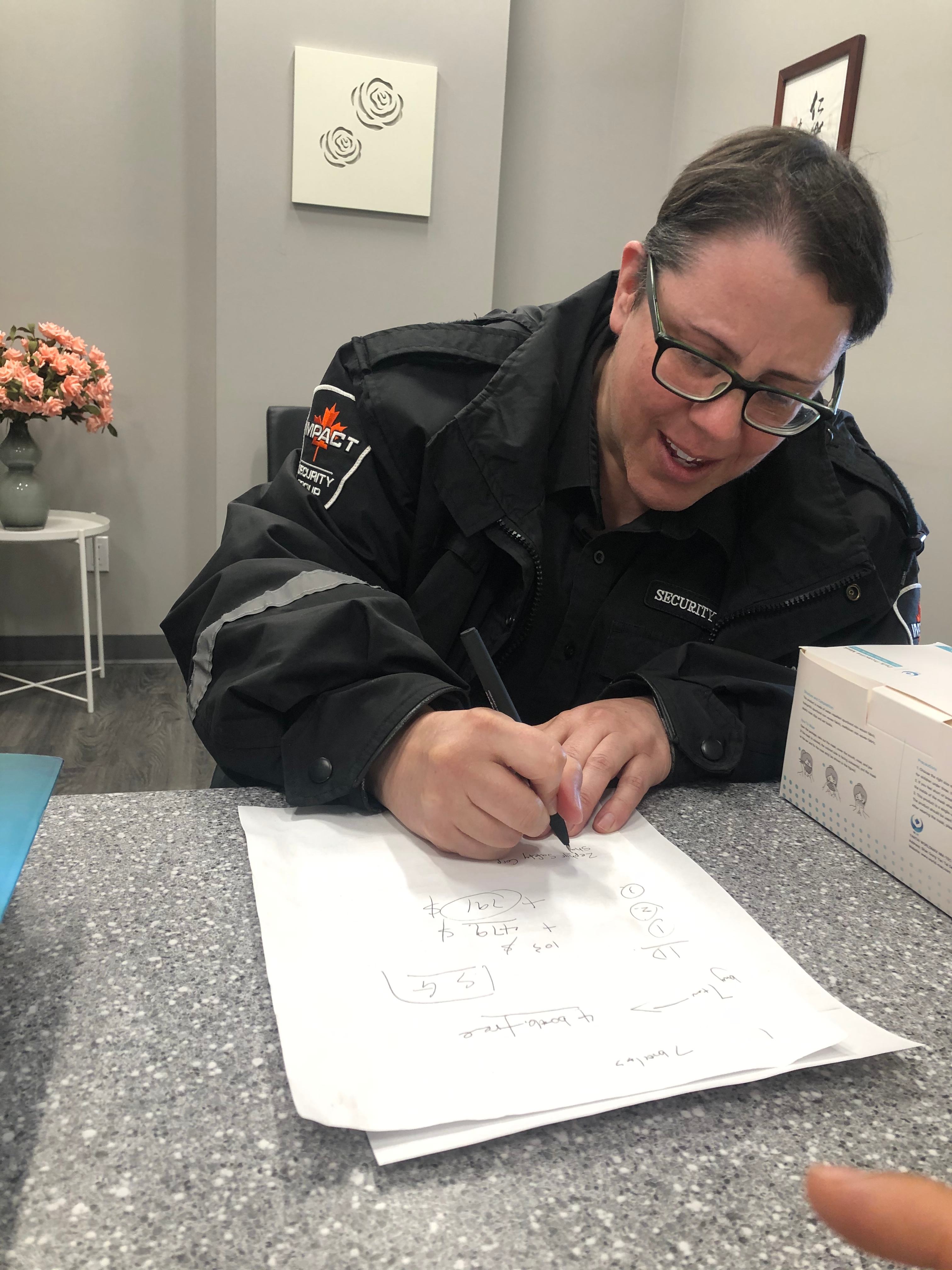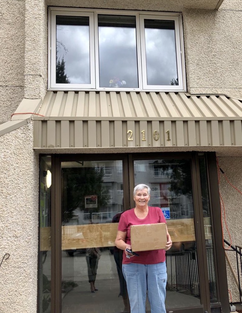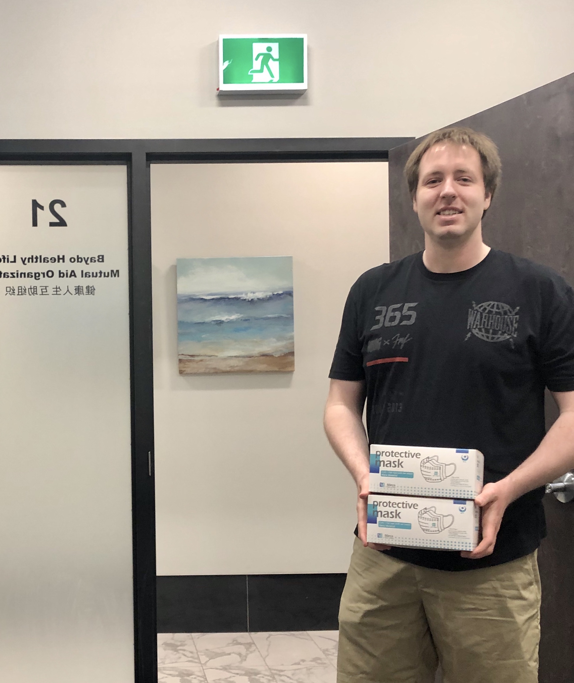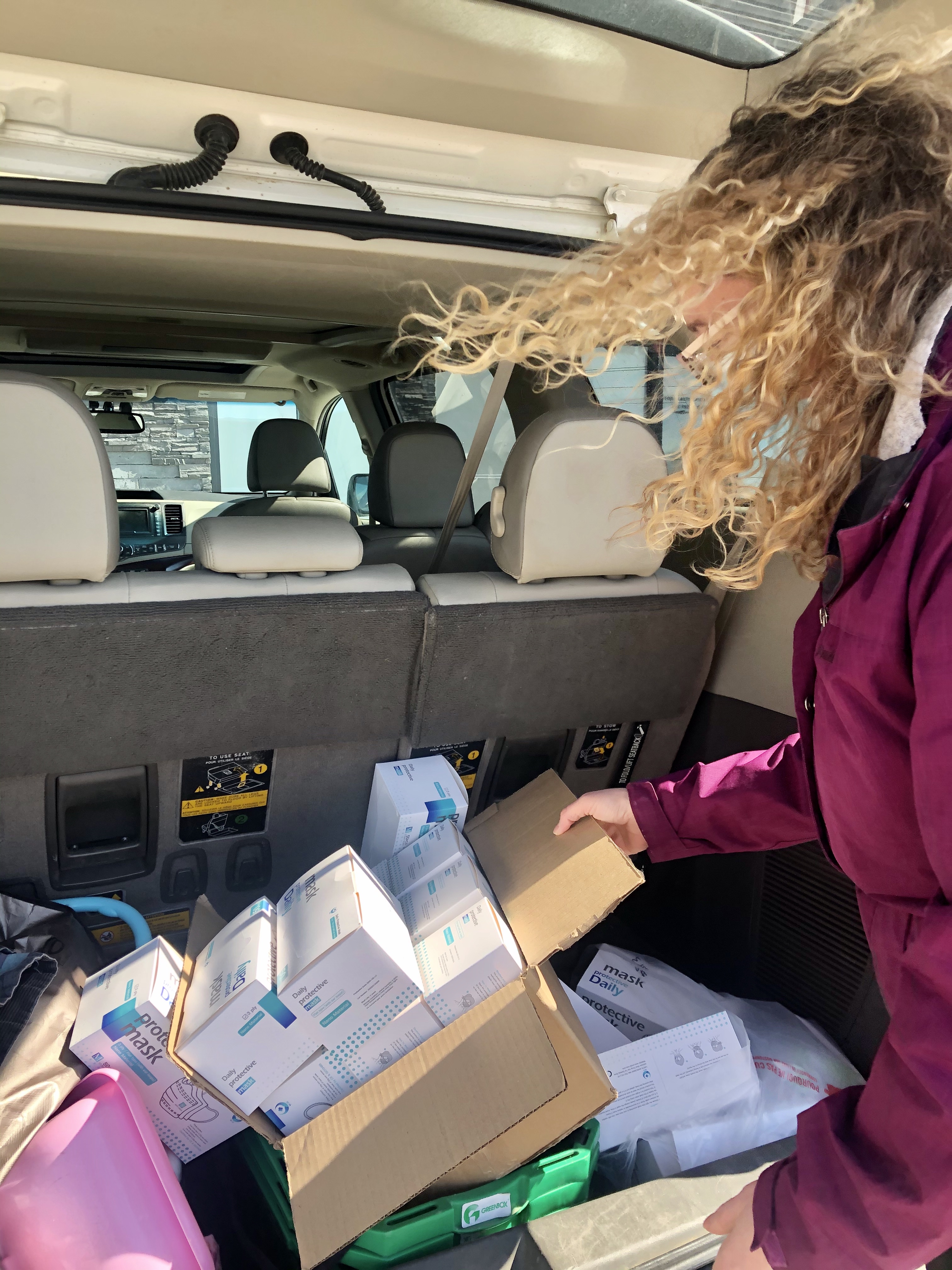 18、4月12日,再次捐助萨斯卡通Open Door医用口罩300个,工作人员郭蓉女士前来领取 :