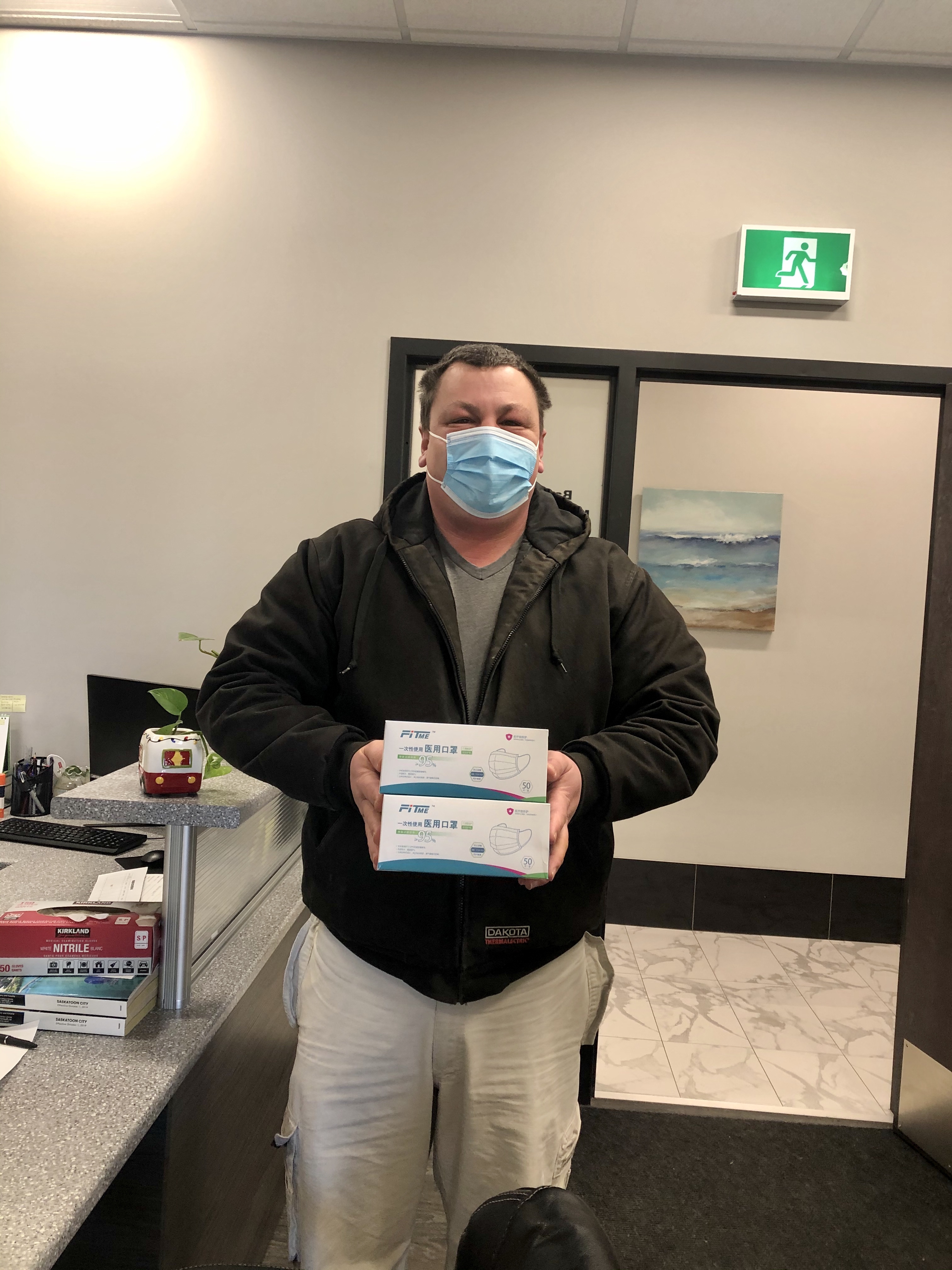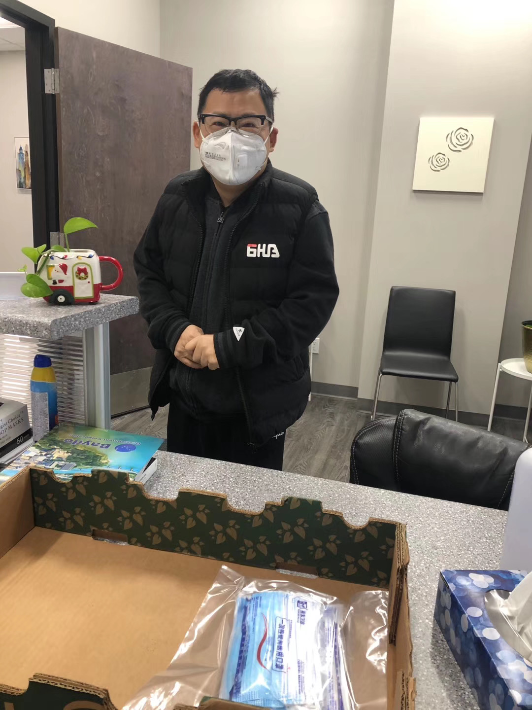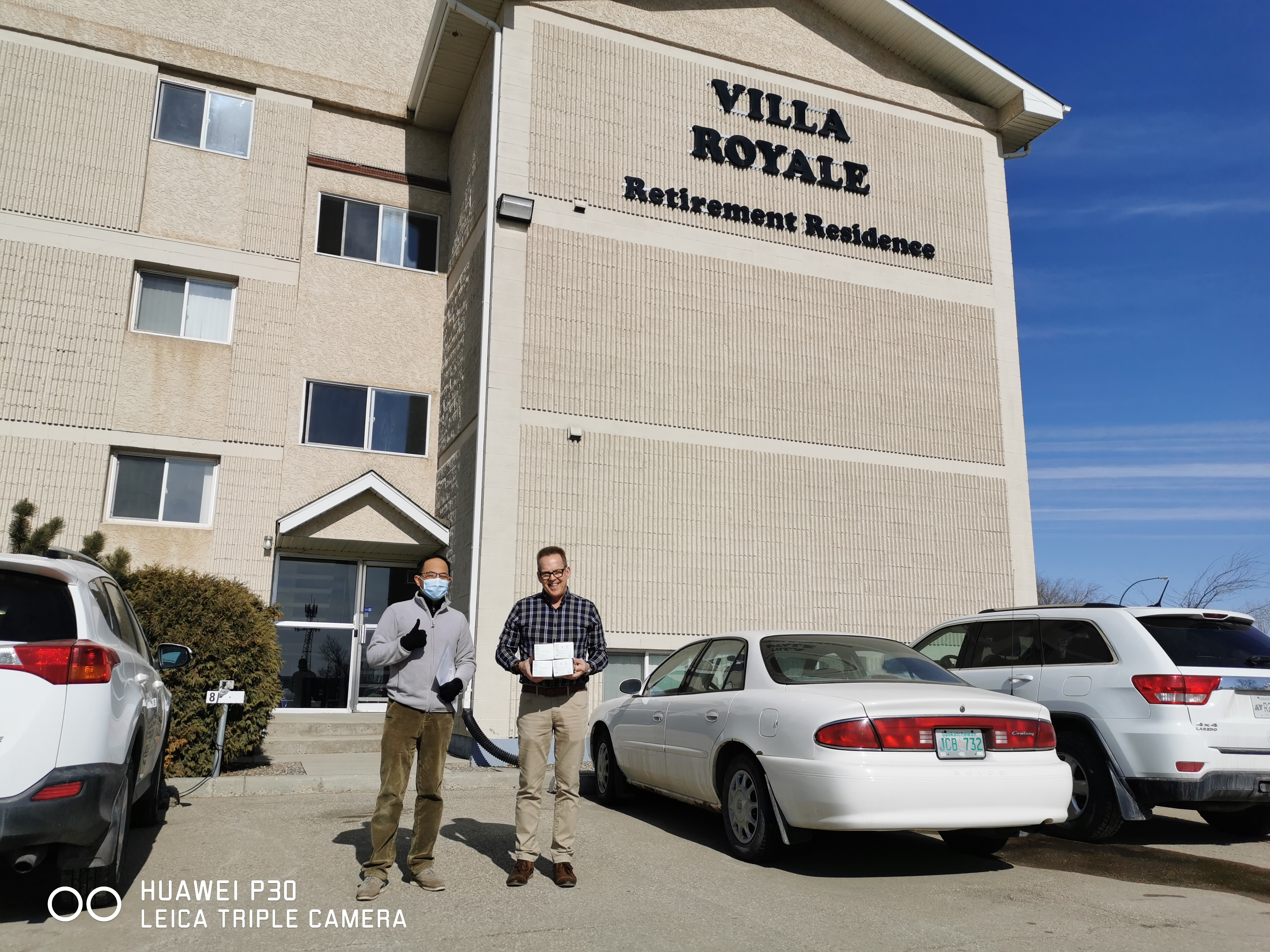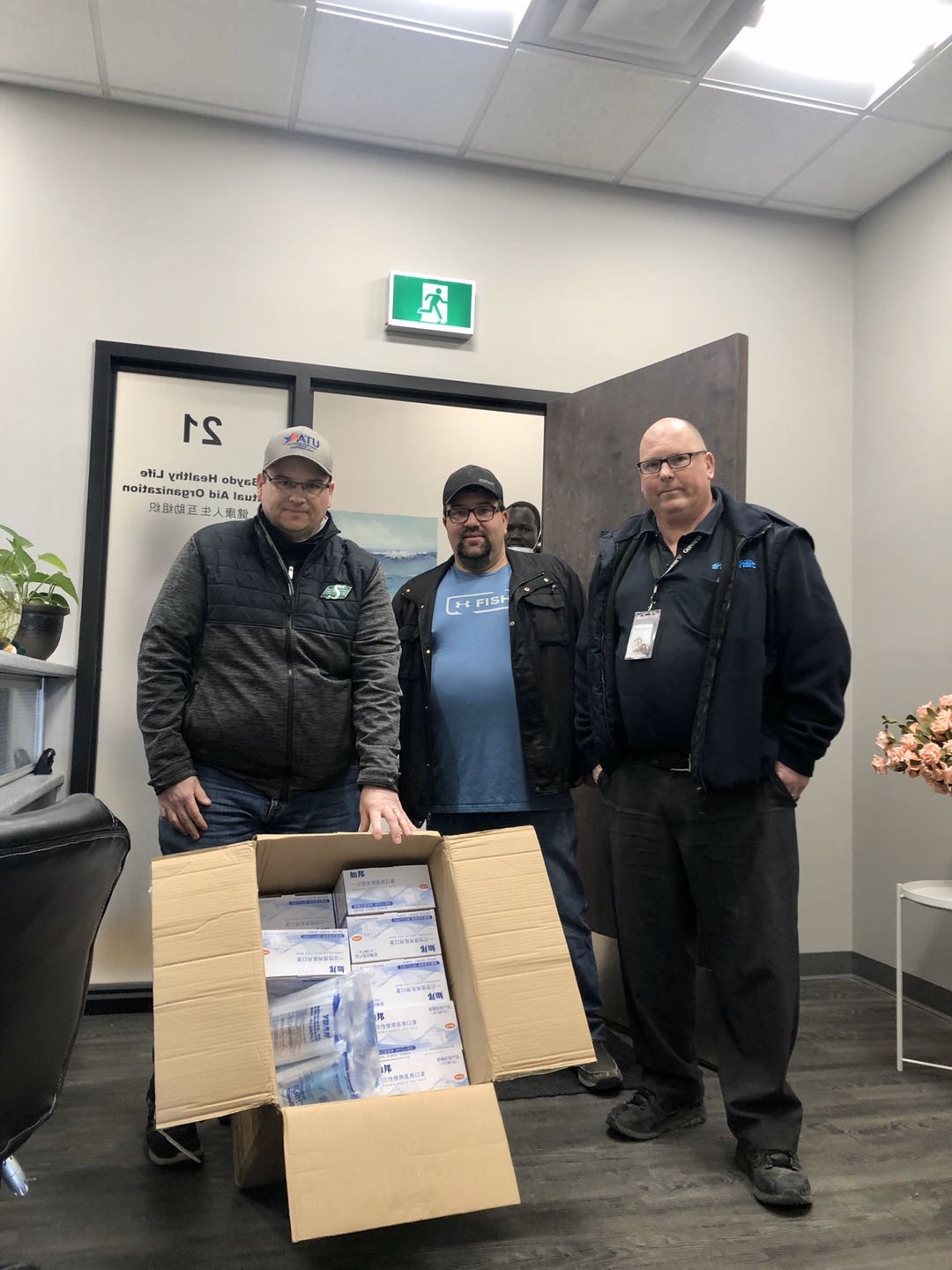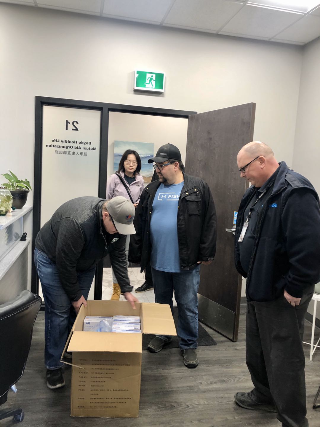 24、4月14日为每天在道路上行驶维护城市运转的300位公交司机捐助萨斯卡通市公交公司ATU(Amalgamated Transit Union)第一批医用口罩2000个,工会负责人president、 Darcy Pederson两位先生前来领取: