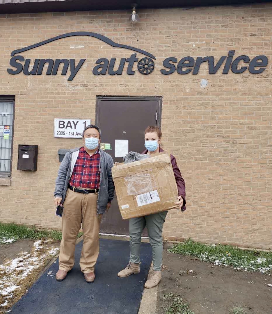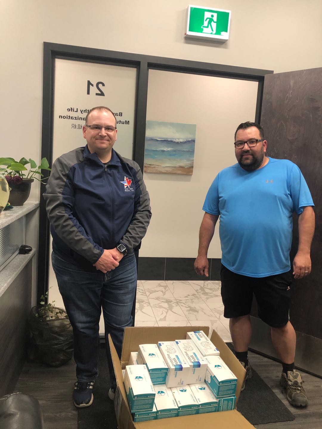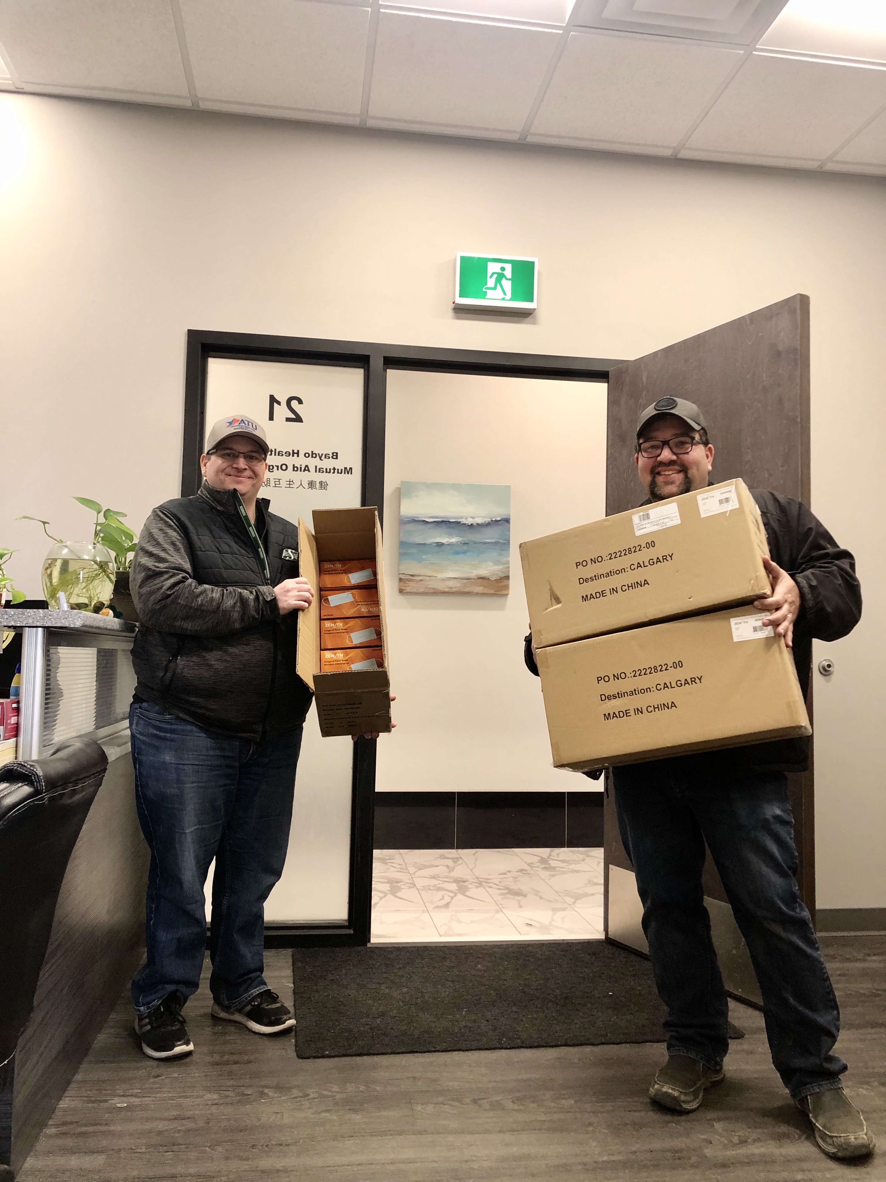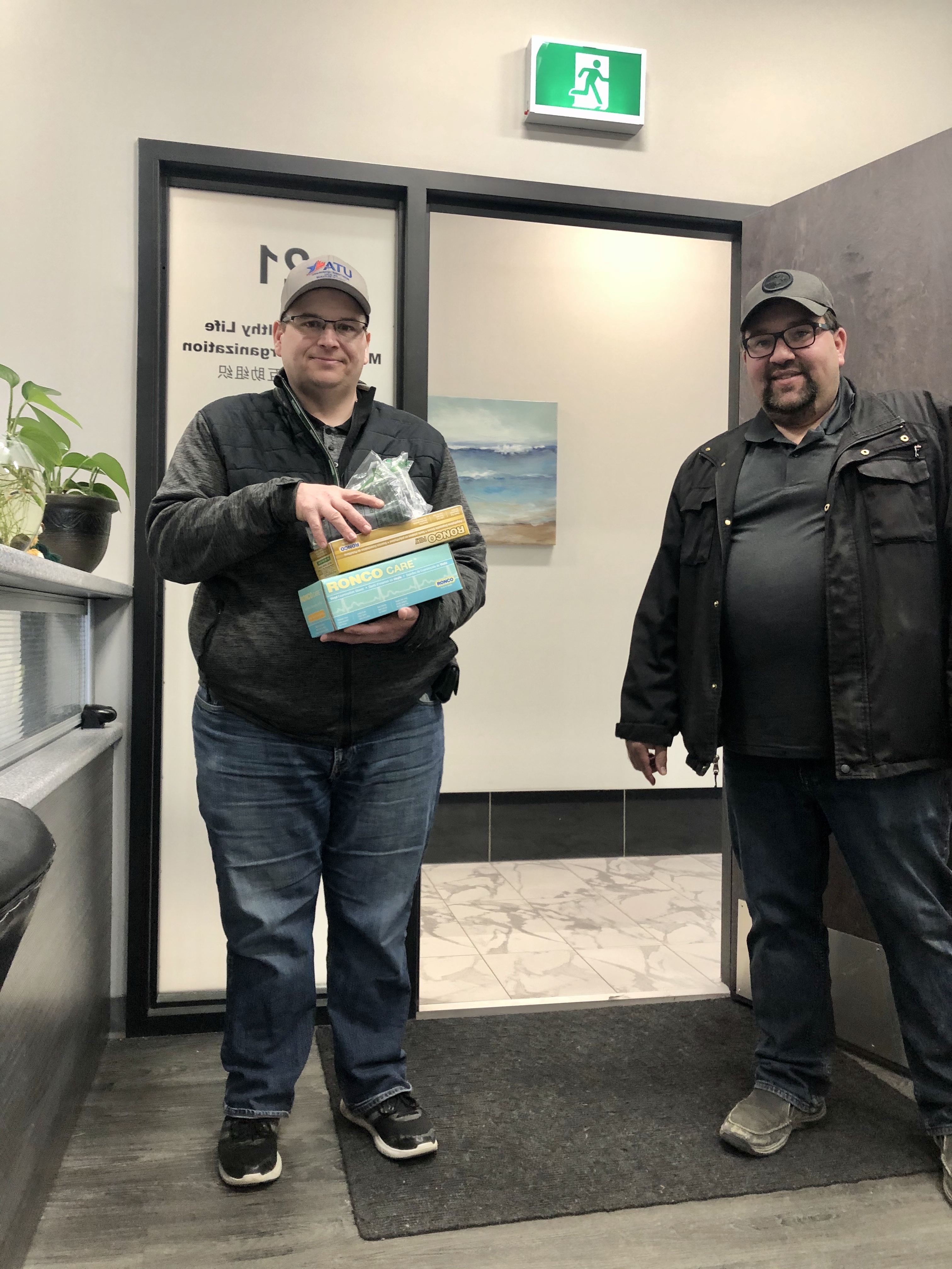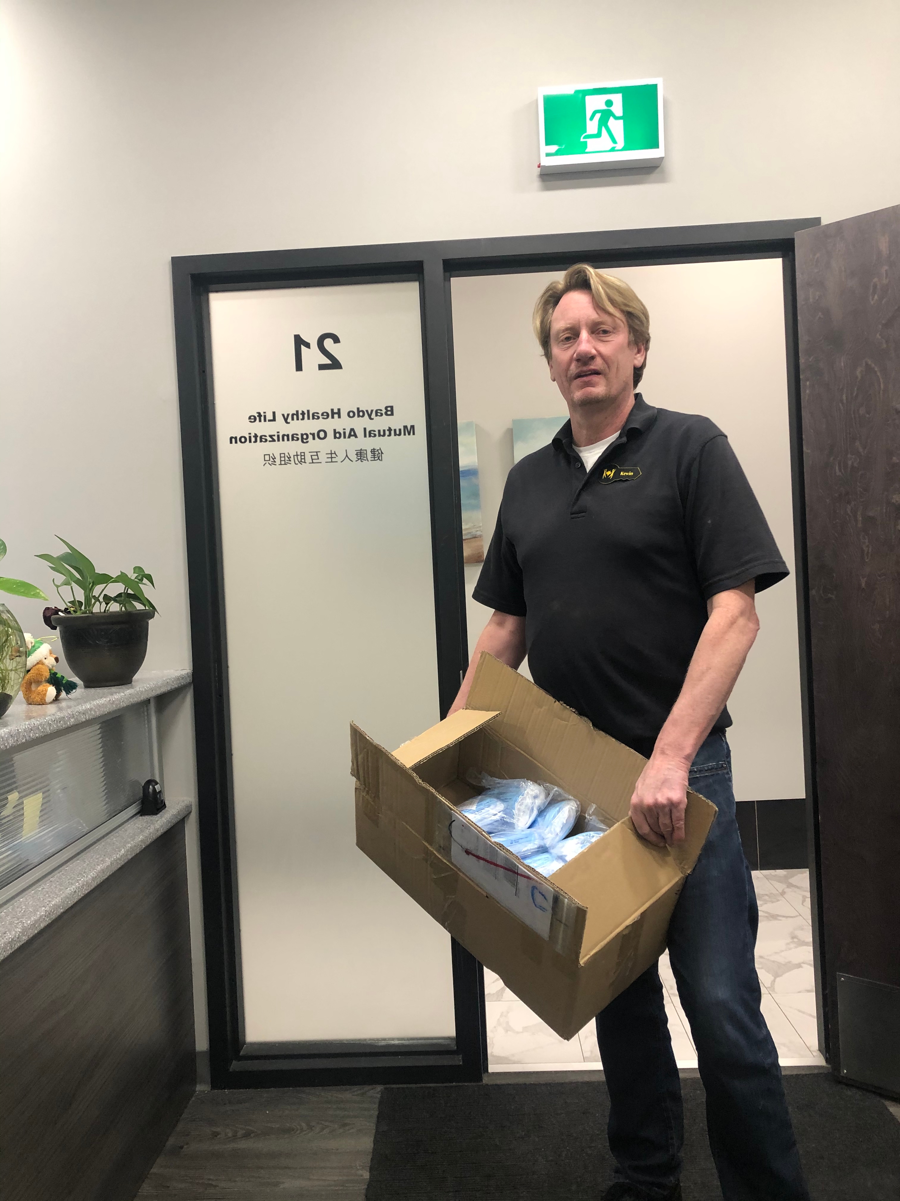 24、4月14日为每天在道路上行驶维护城市运转的300位公交司机捐助萨斯卡通市公交公司ATU(Amalgamated Transit Union)第一批医用口罩2000个,工会负责人president、 Darcy Pederson两位先生前来领取: