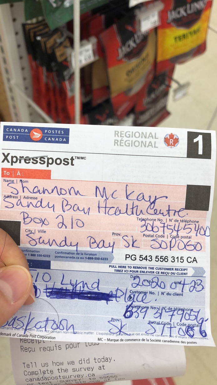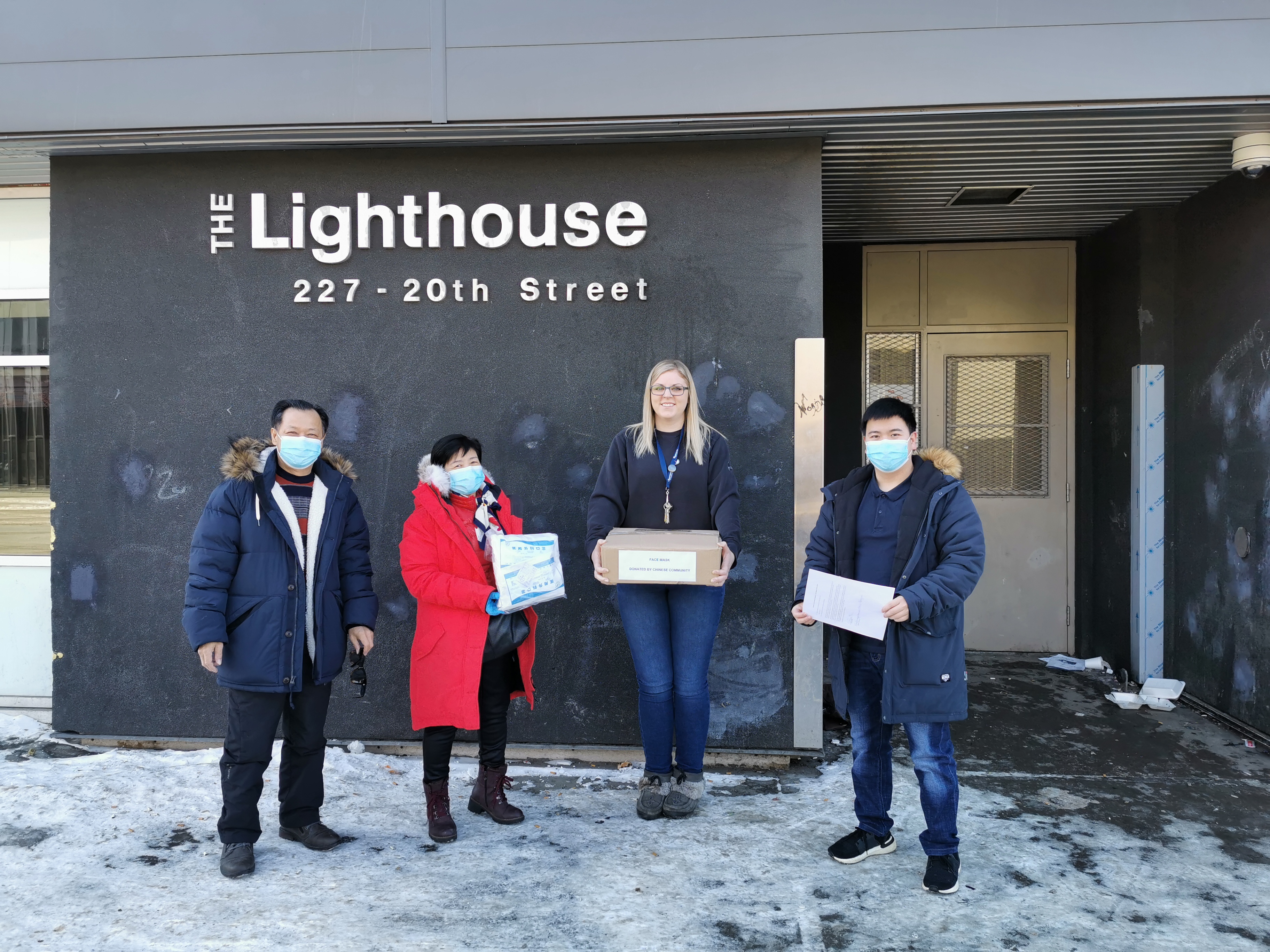 5、4月3日捐助萨斯卡通避难所(Lighthouse)口罩500个,含外科口罩100、防护口罩400个: