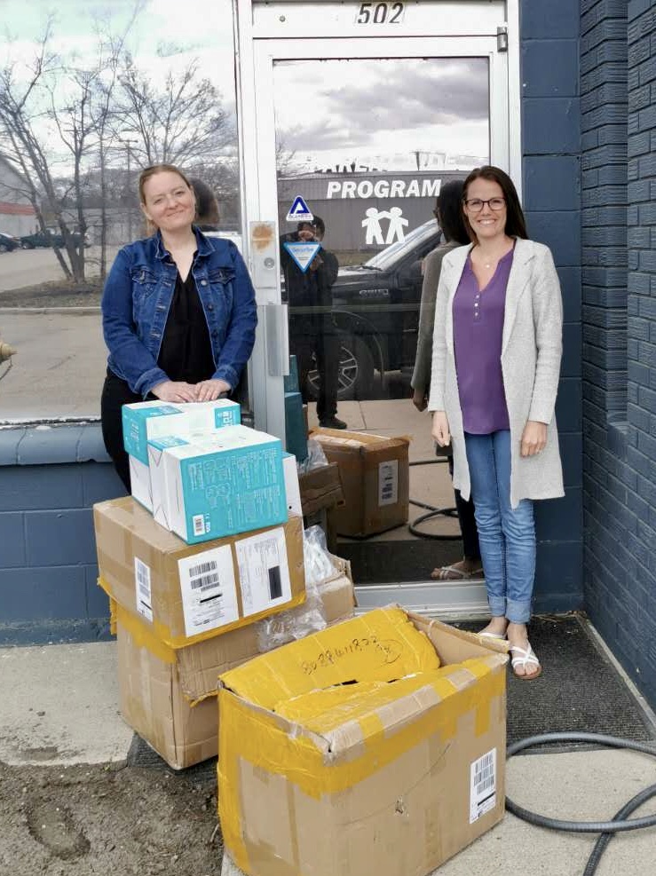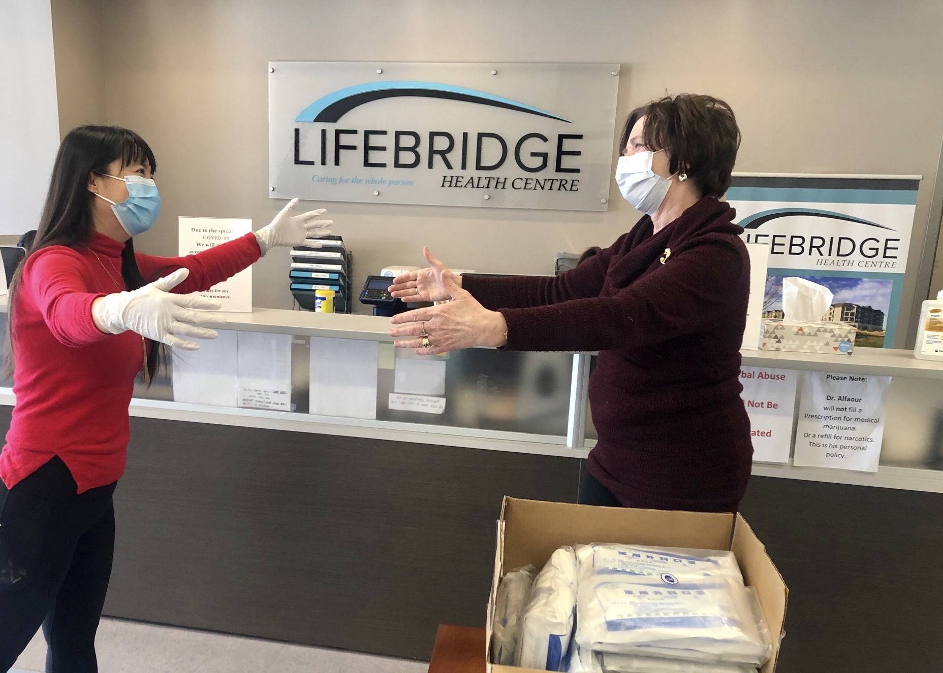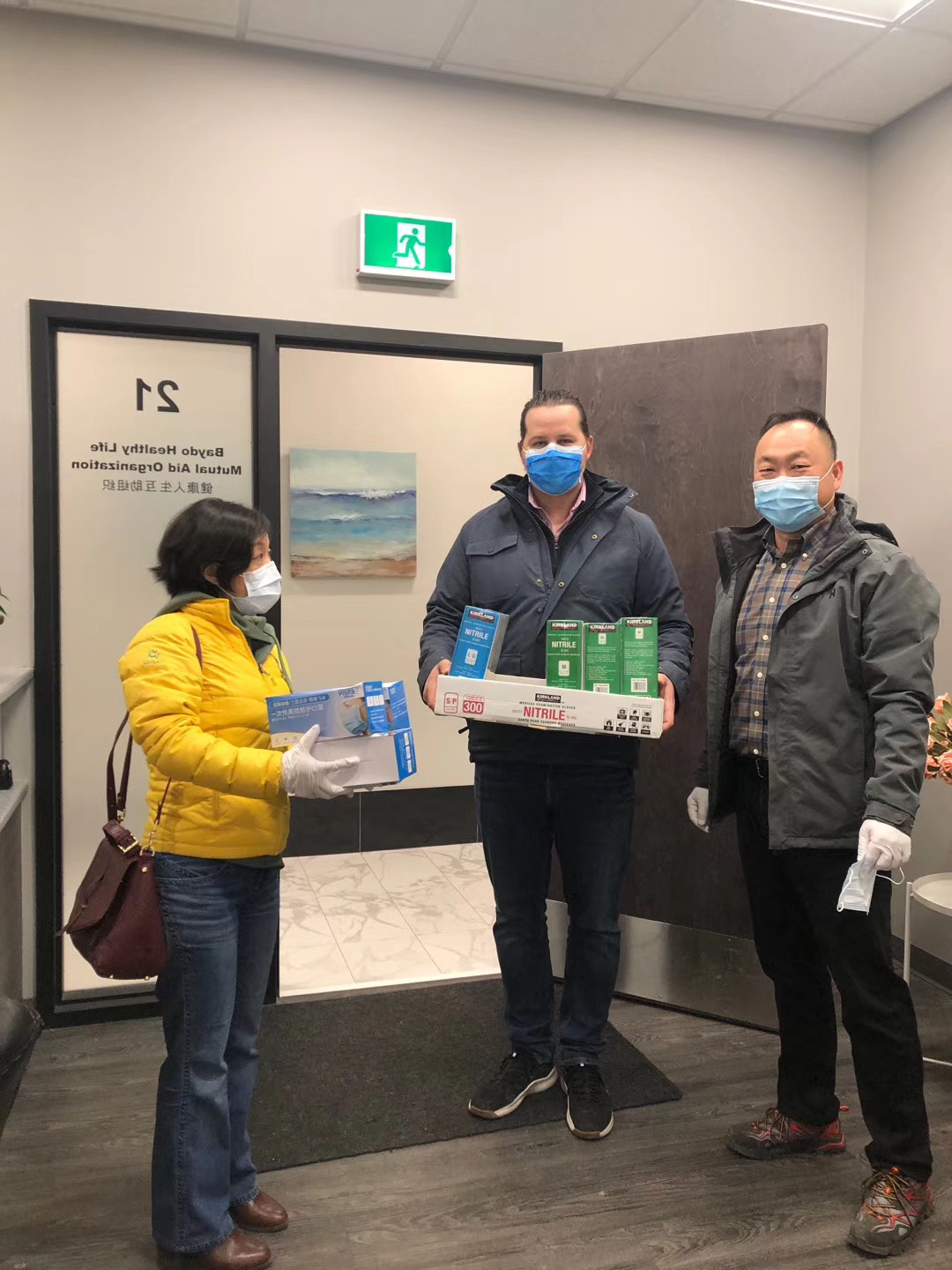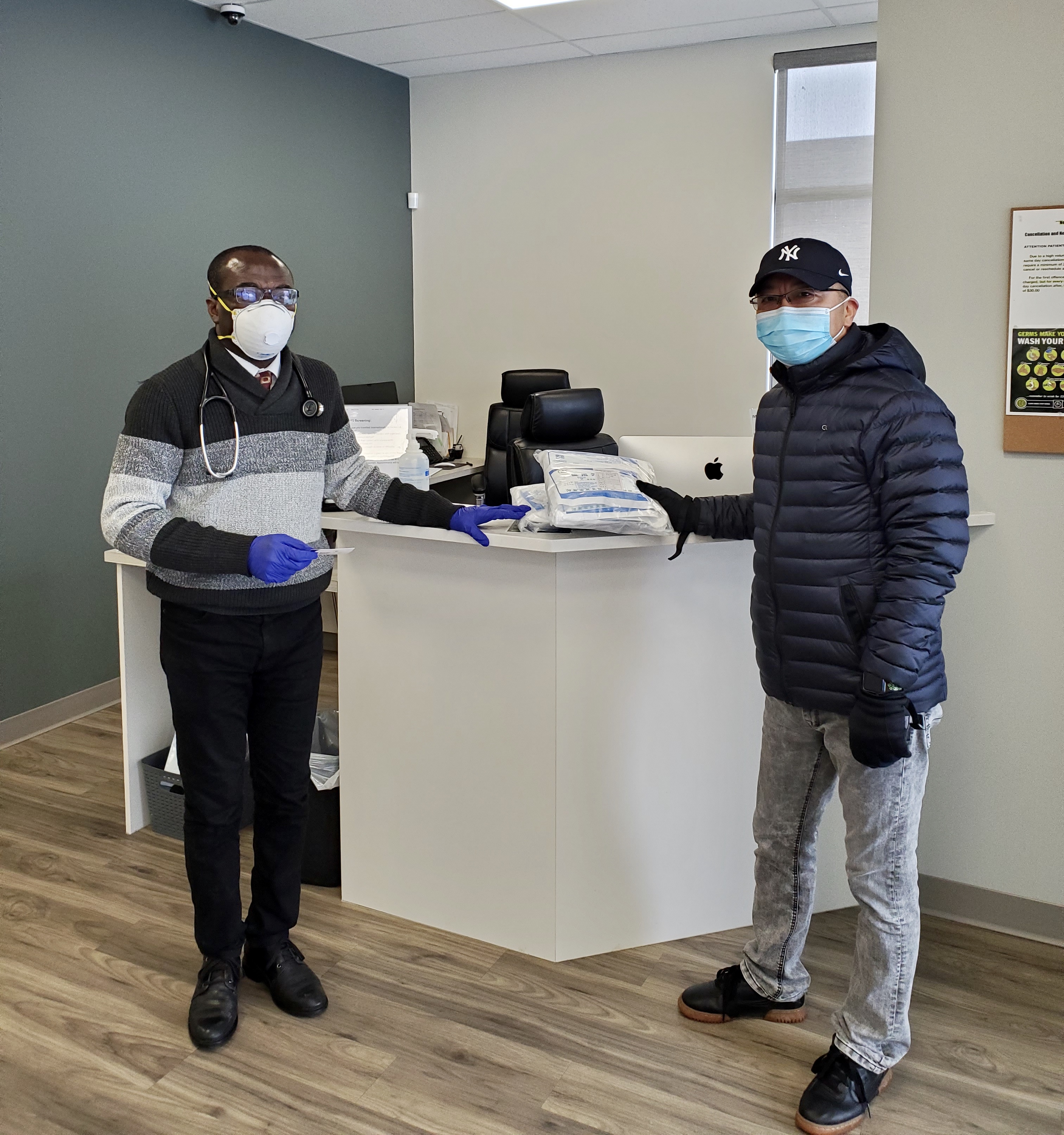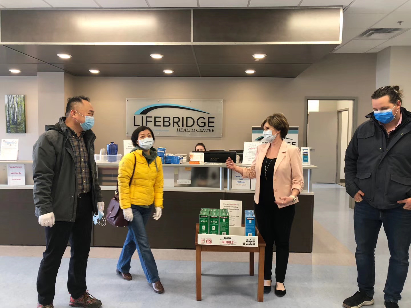 4、4月2日捐助萨斯卡通四个急需防护用品的诊所医用外科口罩800个,诊所分别是lifebridge health center、Lakeside medical clinic、Tripple T medical clinic、Lenore medical clinic,由Lifebridge诊所值班医生统一接收后向其他三个诊所配送: