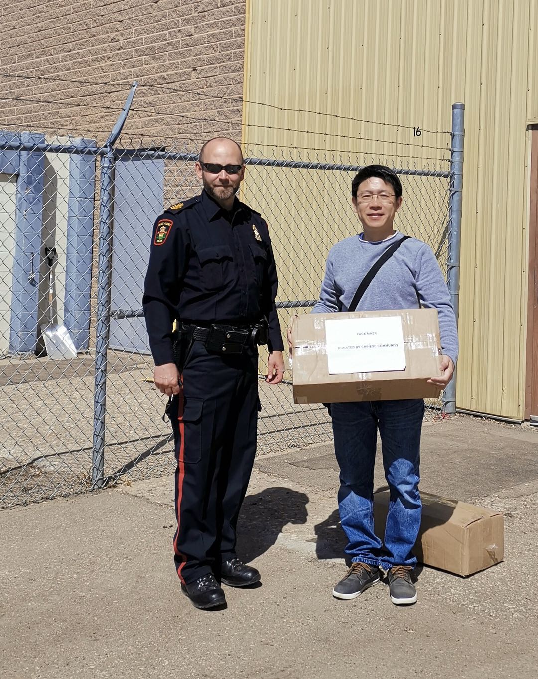 9、4月7日捐助萨斯卡通市警察局防护口罩1000个;