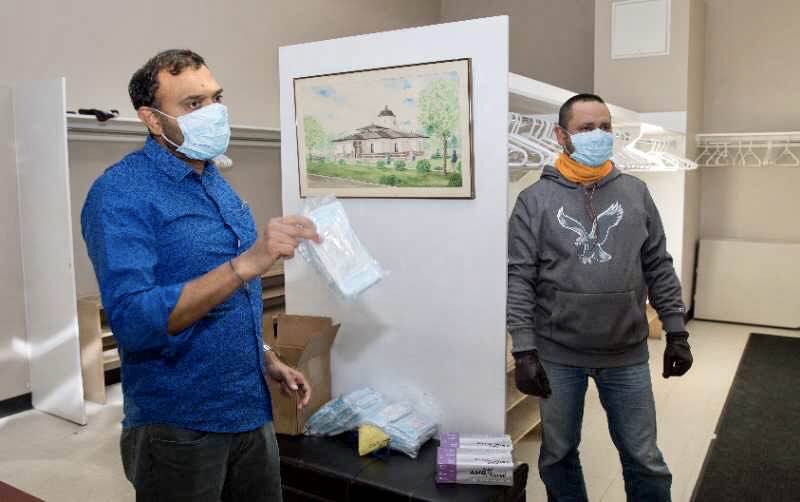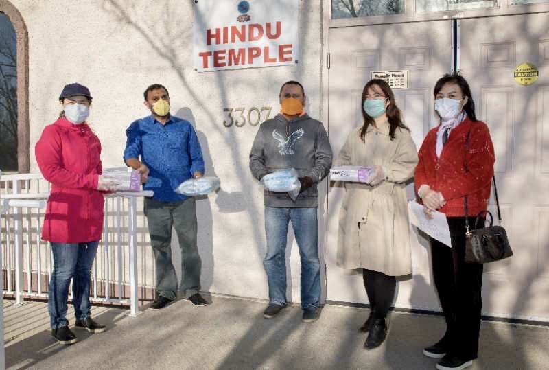 15、4月9日,捐助锡克协会(Sikh society of Saskatoon)防护口罩150个,用于他们发放食品给流浪者的救助活动,由其领导人Moudeepsetla前来领取(宗教原因照片略)。
