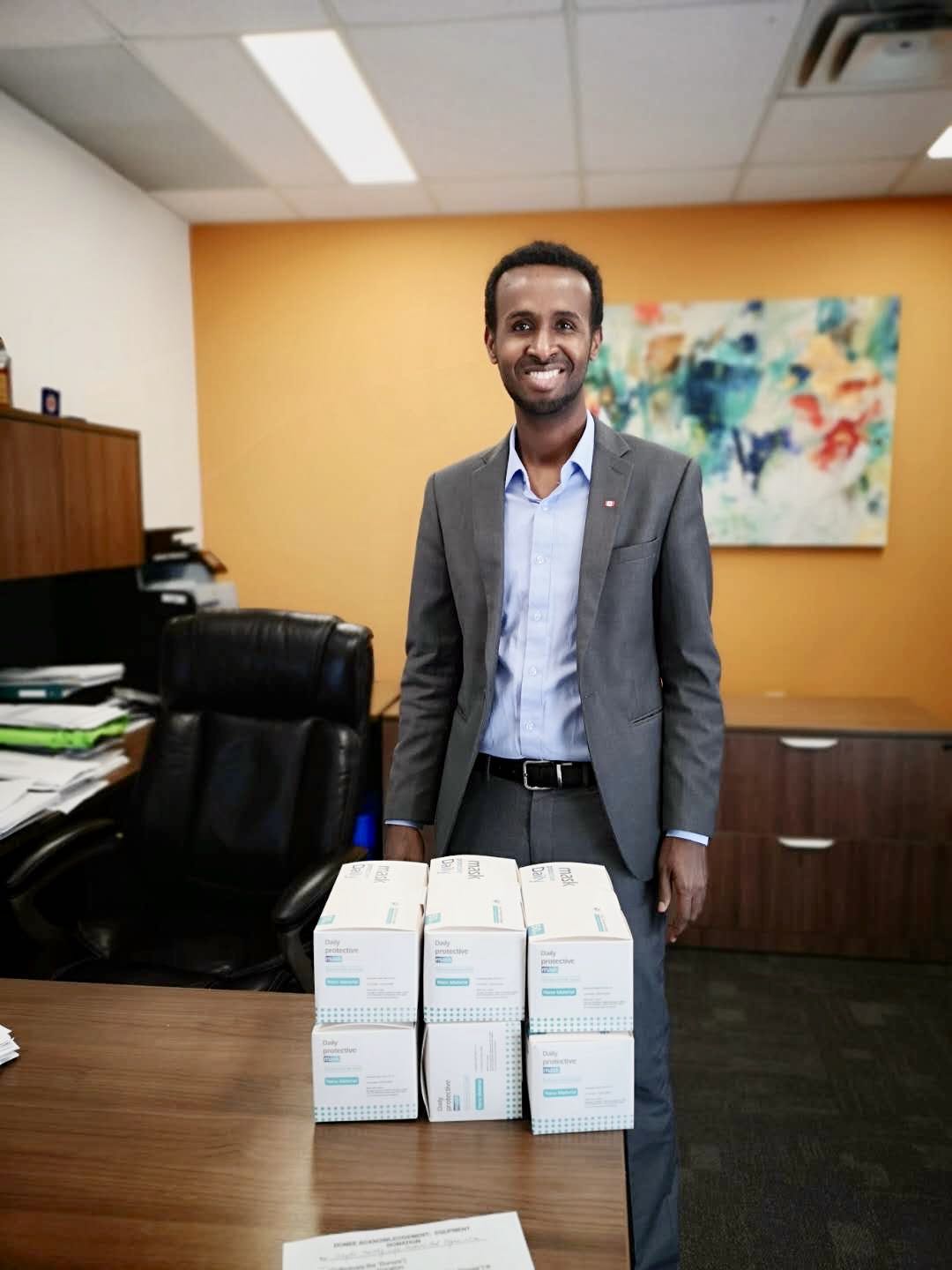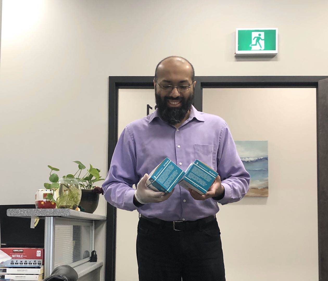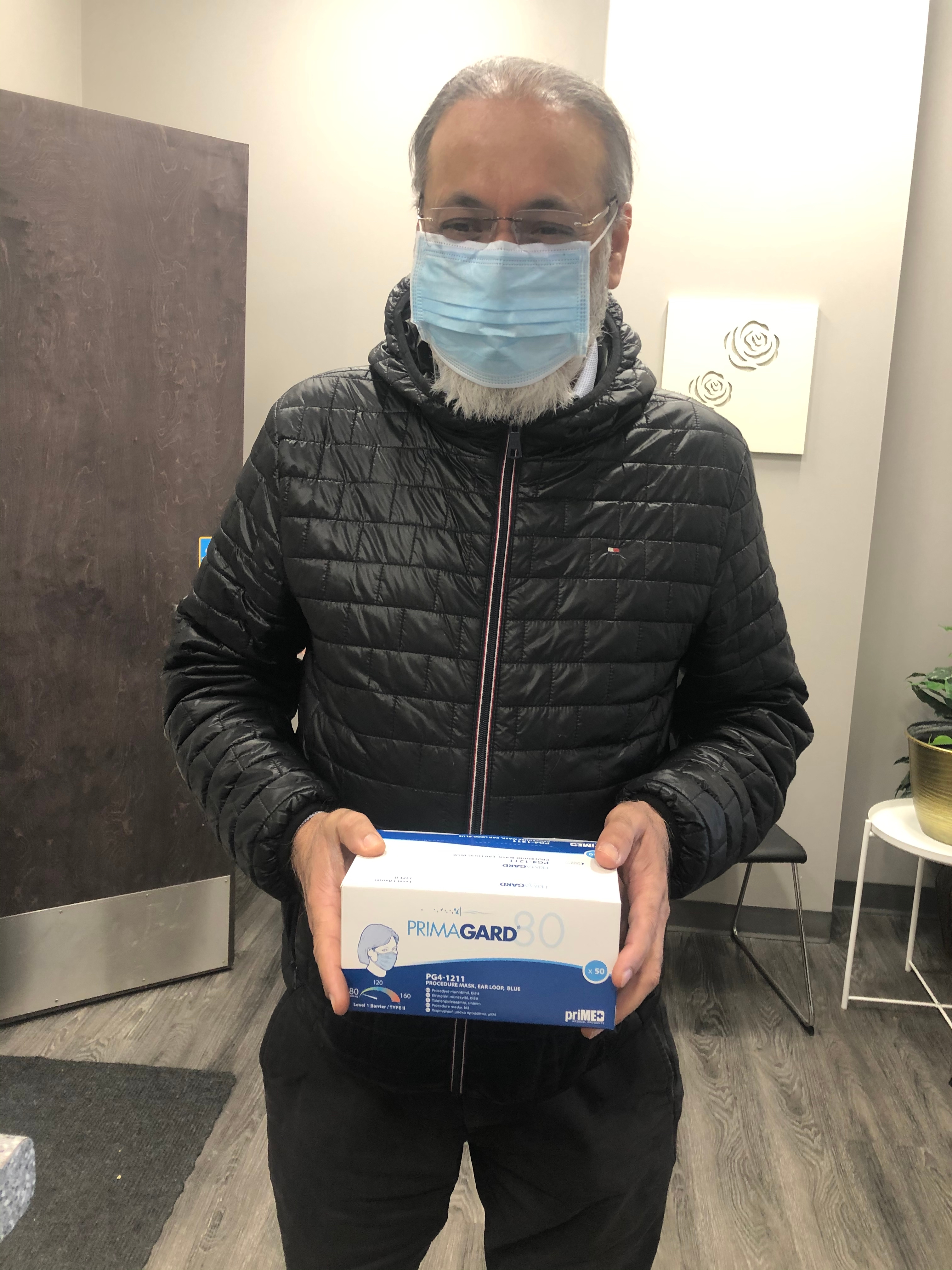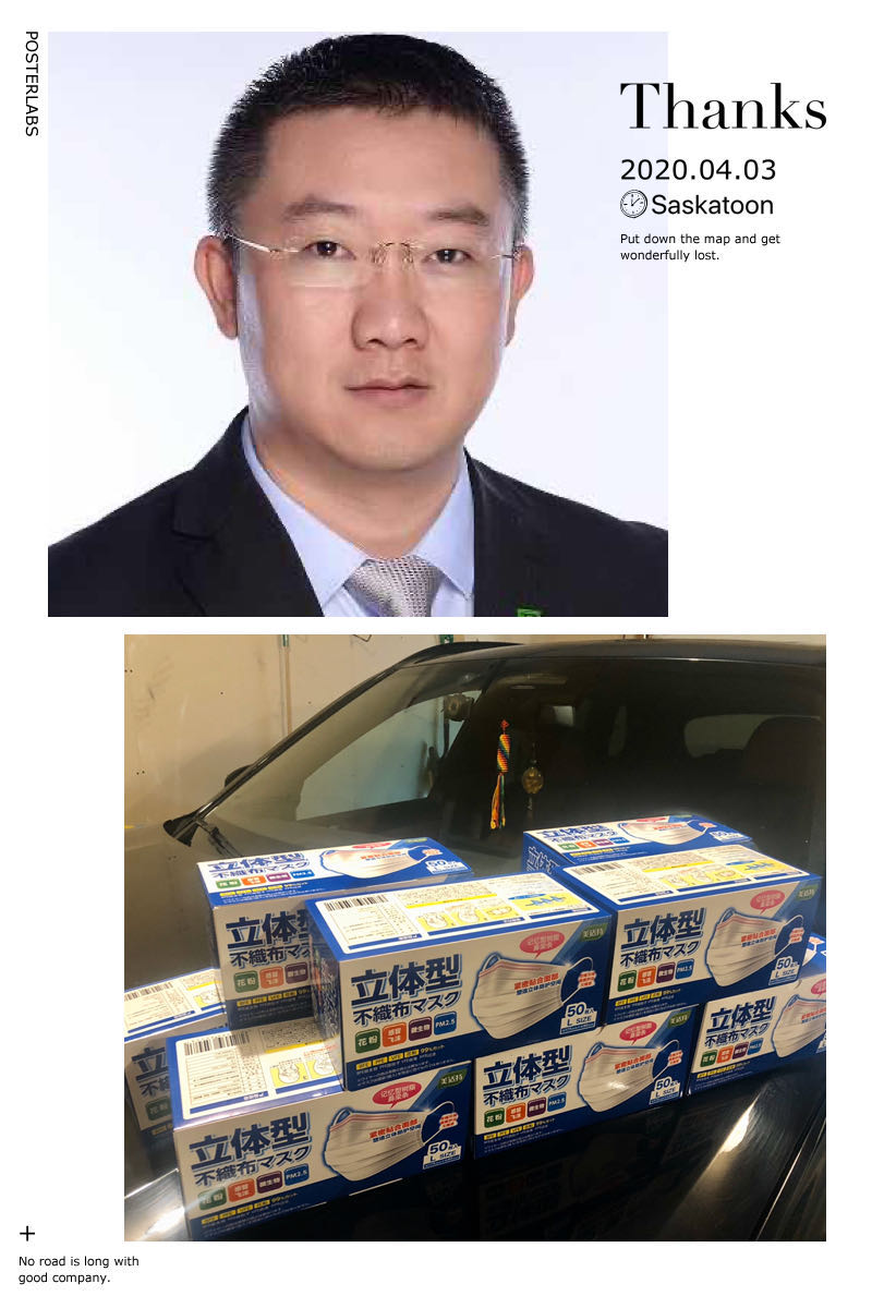 44、4月21日捐助有40位专科医生的Saskatoon Medical Group外科口罩500个,由Dr. Satchan Takaya医生领取: