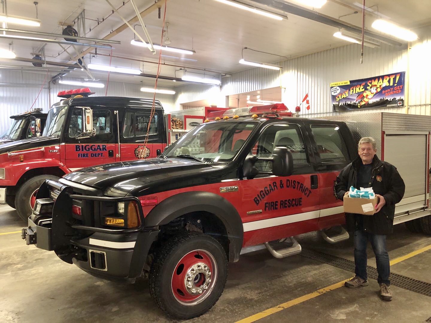 12、4月8日捐助萨斯卡通市郊区5个消防局防护口罩1000个,分别是:Perdue、Asquith、Delisle、Eagle Creek、Biggar