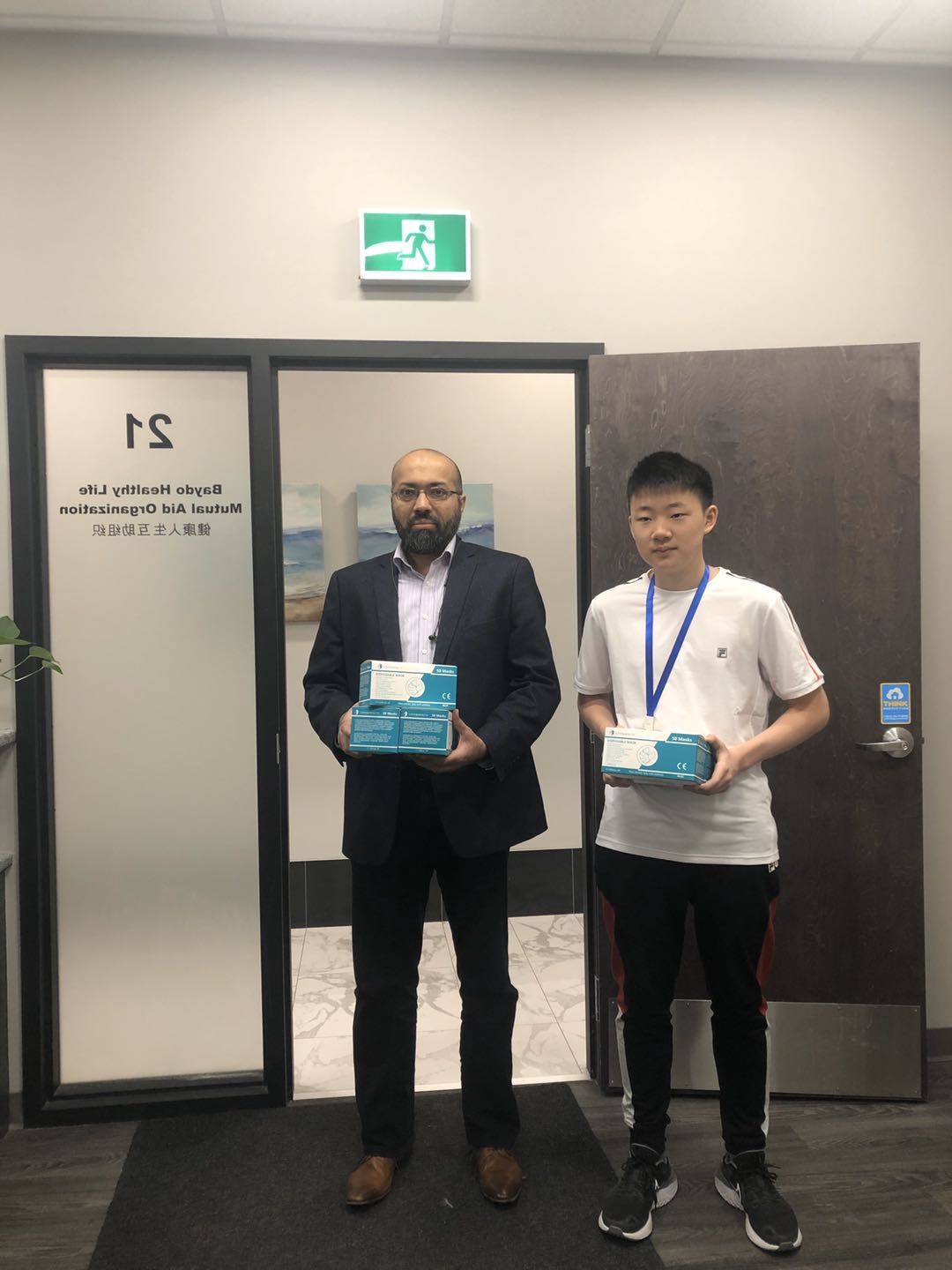 54、5月1日捐助Saskatoon Society for the Protection of Children萨斯卡通儿童保护机构和Saskatoon Crisis Nursery萨斯卡通危急儿童保护中心医用口罩5500个、外科口罩500个: