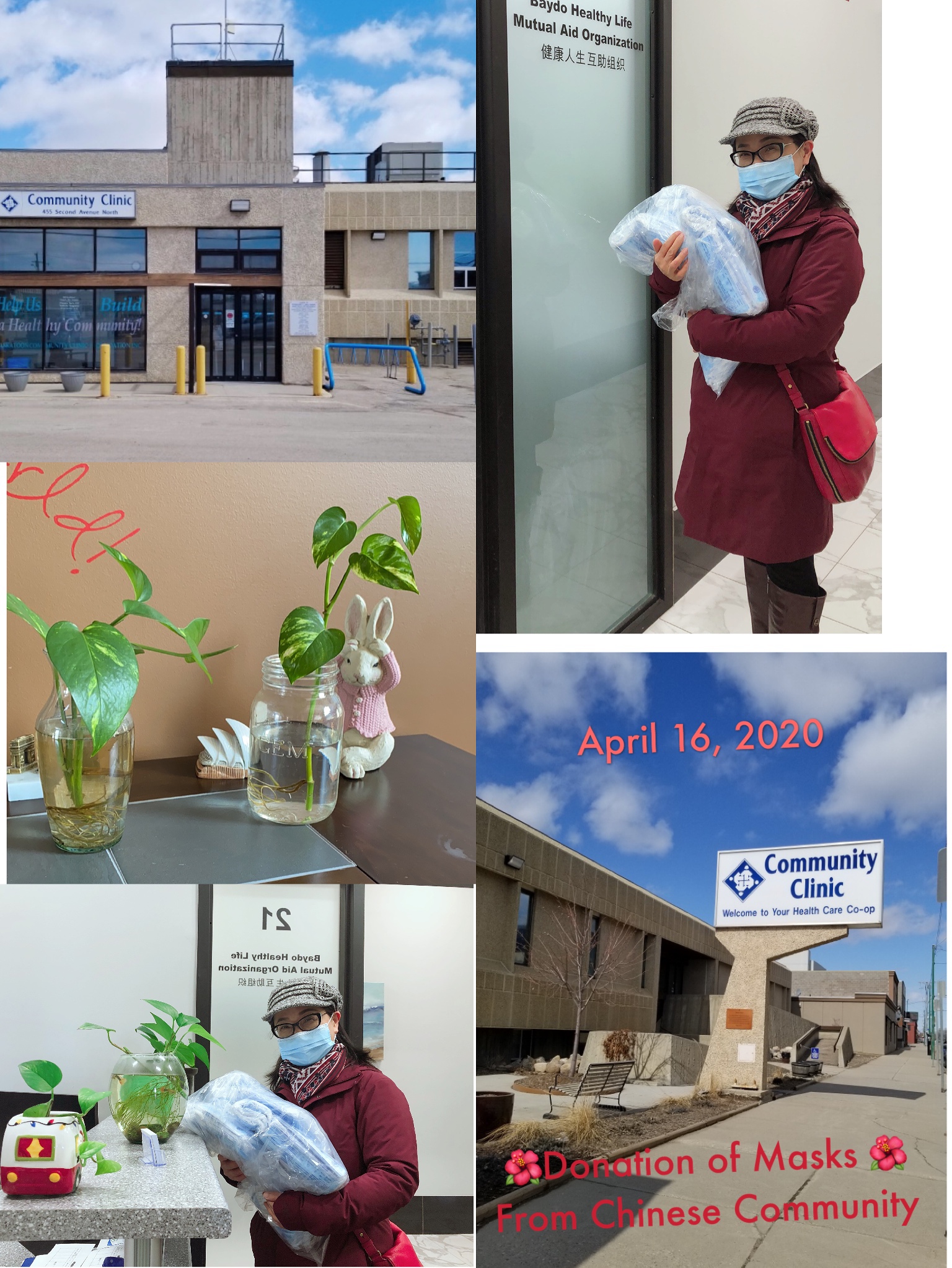 34、4月16日捐助Downtown大型诊所Saskatoon Community Clinic外科口罩500个,由吴燕医生亲自前来领取,吴医生说解了她们燃眉之急: