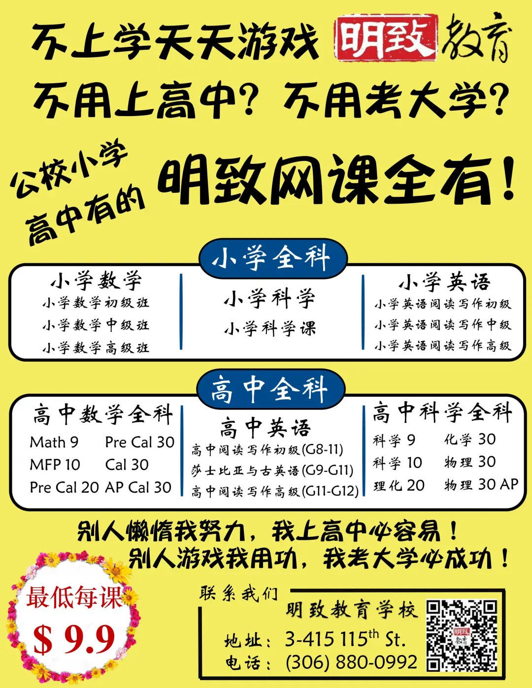 在疫情期间,不少小学高年级和高中家长们为了孩子不落下学业而奔走,而家长们最关心的课程莫过于高中英语课了。值此特殊时期,明致教育隆重邀请小宿老师的师父,萨屯公校资深高中英语老师罗斯涅尔老师,特推出讲座:高中公校英语老师讲解高中英语。让大家足不出户,便可站在本地白人老师的视角认识高中英语课这一华人学子升入大学的最难点!本次讲座的内容有: