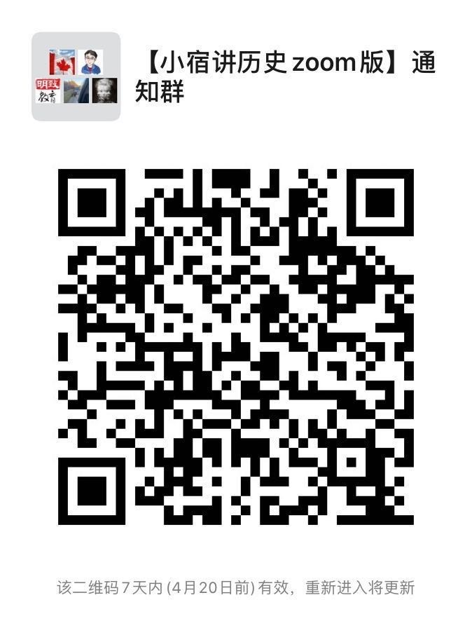 活动时间:每周三 16:00-16:40 加拿大历史文化 每周六 17:00-17:40 西方历史文化 4.15日第一期上线哦! 大家可以扫码直接入群!