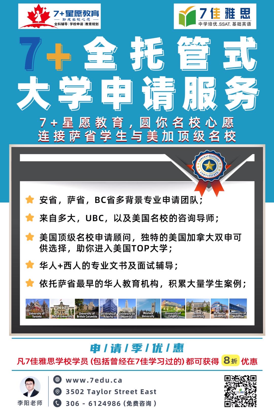【7+星愿教育/ 7佳雅思学校】多伦多大学本科/硕士毕业老师讲多伦多大学 内容简介 1.我该申请哪些专业? 多大王牌专业和学习资源介绍 2.应该申请哪个校区?多大三个校区UTM,UTSC,UTSG全对比 3.多大真的很难毕业吗?真实学习经验分享 4.该不该选择多大?多大的优势及弊端 5.多大毕业生好找工作吗,就业前景如何? 老师介绍:Vera程 -多伦多大学本科双专业荣誉毕业生,多伦多大学教育学研究生 -拥有多年加拿大留学以及指导留学生学业、职业规划经验。 -7+星愿教育大学申请专业咨询老师 时间:本周日9.6日 4—5pm 直播讲座,添加此微信(1871246290)参加