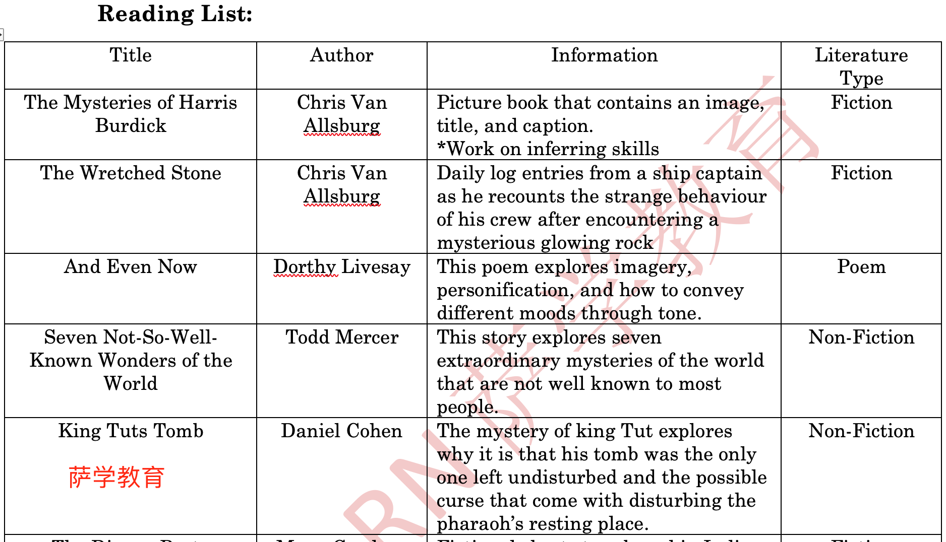 2. 老师将与学生们一起阅读精选的十本与神秘有关的书籍,讲解阅读前/中/后的方法和技巧,并分析常见修辞手法。