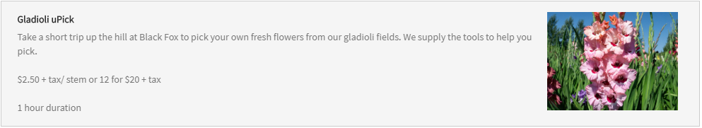 照亮您的家或赠送一束鲜花。 我们提供工具供您从在Black Fox的数英亩鲜花中采摘。