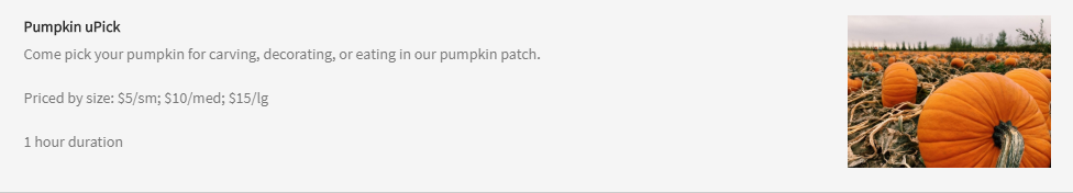 也可以摘南瓜,按尺寸定价: $5/sm; $10/med; $15/lg