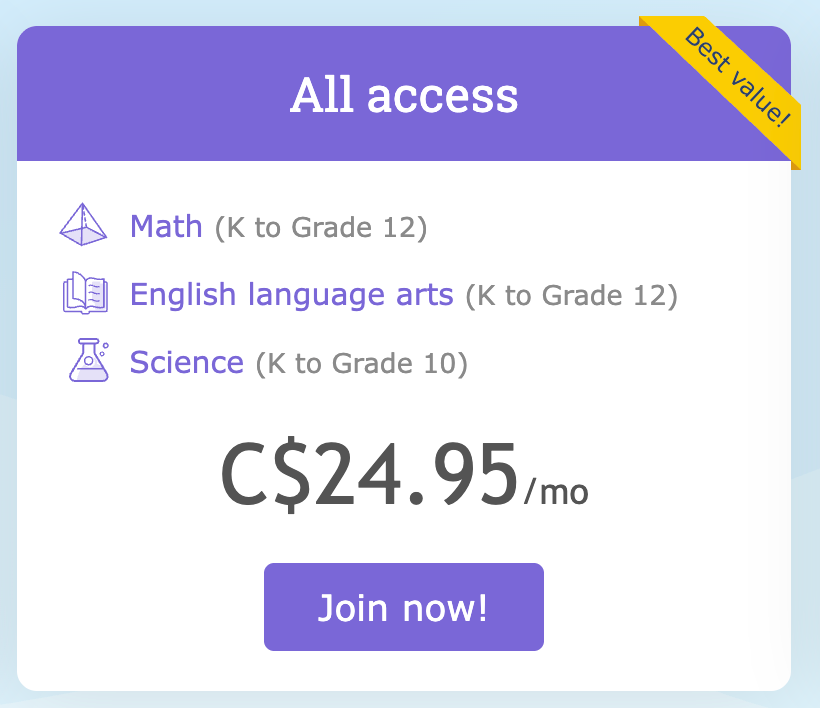 如果个人买的话英语,数学和科学需要$25/月. 团体购买较划算,所以组织一次团报名活动。