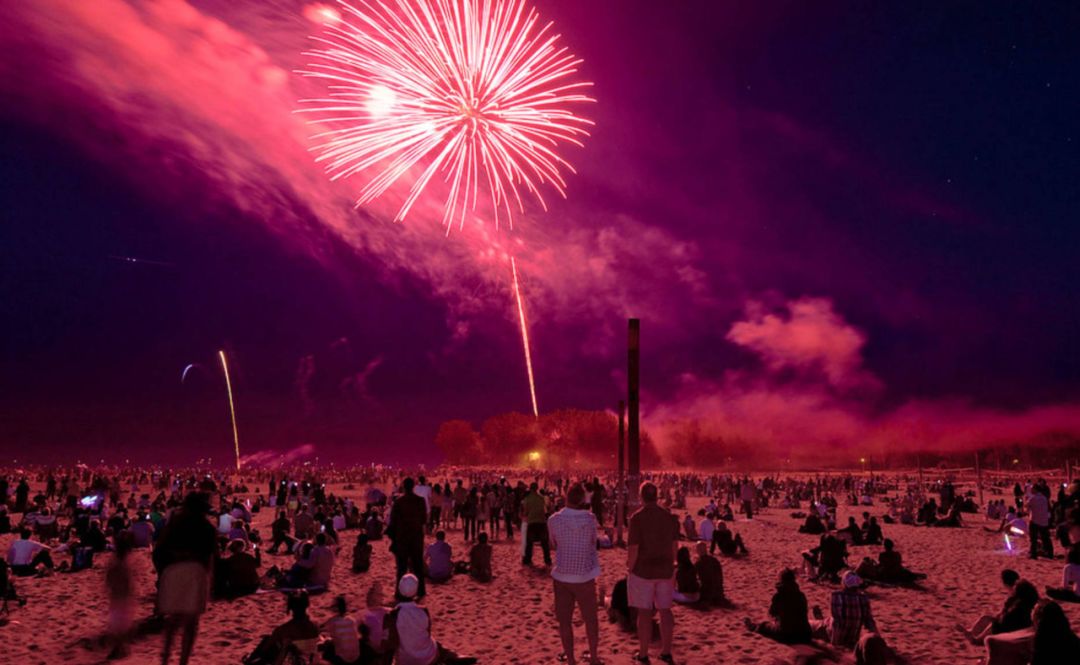Ashbridge Bay公园也是受欢迎的赏烟花胜地之一!烟花表演约在晚上9:45开始,以往去过的人们建议下午5点就要去抢好位置啦~烟花秀约14分钟!