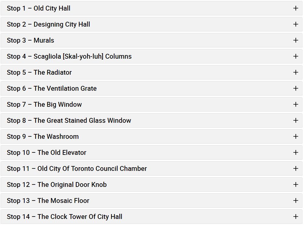 在多伦多市政网站上有参观老市政厅的语音导游,对每一个有意义的地方都进行了详细的讲解。