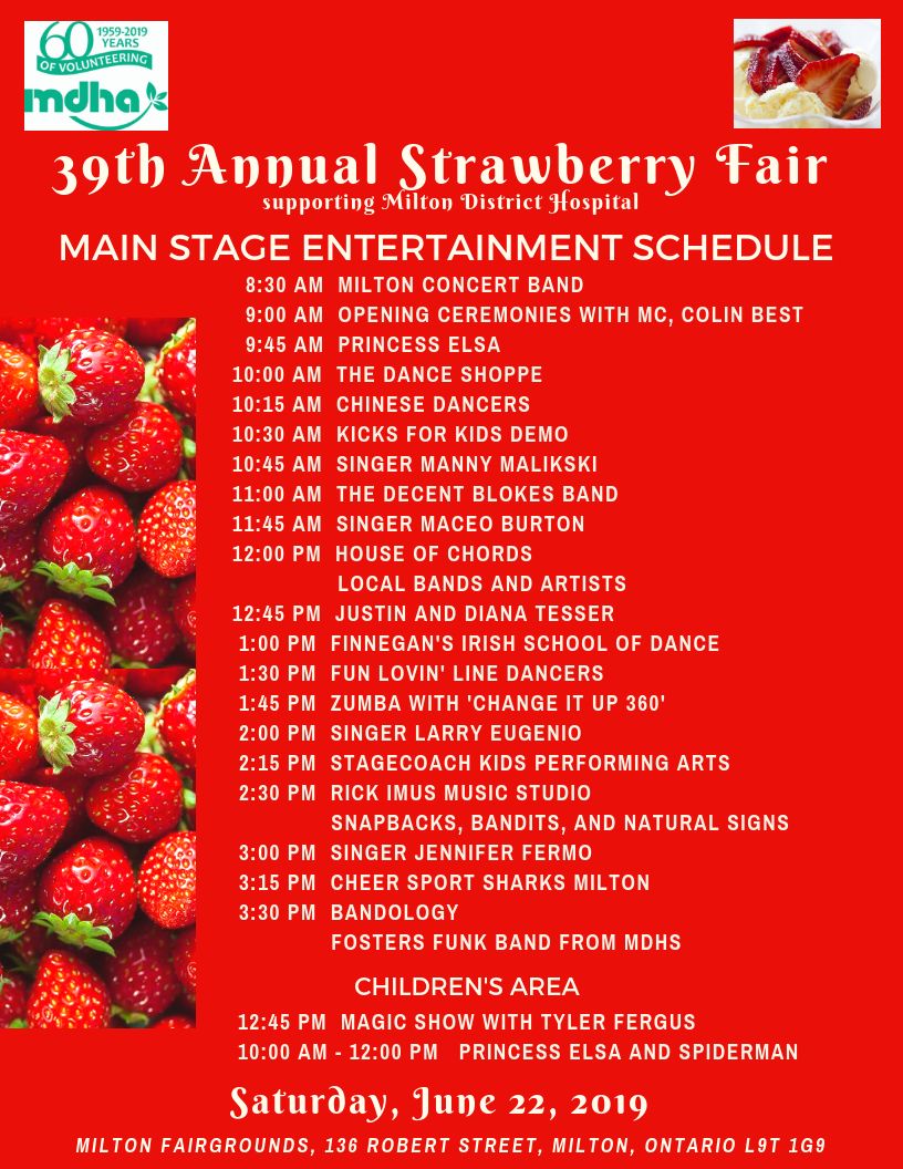 第39届草莓嘉年华!有草莓松饼早餐、各种草莓小食、儿童活动区、有Elsa和蜘蛛侠、魔术表演等...具体日程如下: