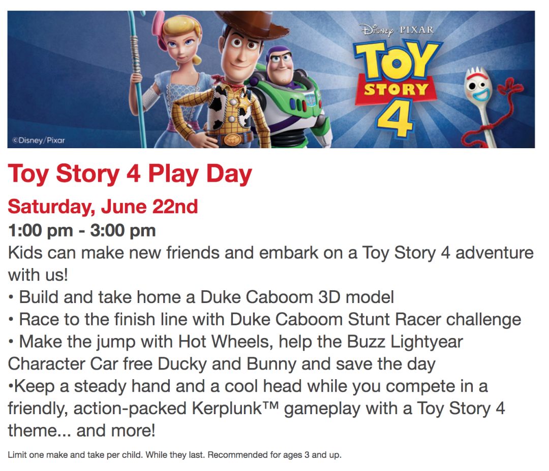 玩具总动员4主题游戏日!小朋友可以体验各种主题活动哦~可带回家一个3D模型。建议3岁以上孩子参加,一个孩子限领一份。
