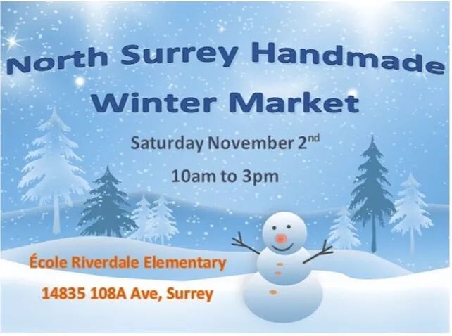 第九届北素里冬季农贸集市(North Surrey Handmade Winter Market)将于11月2日在Ecole Riverdale Elementary小学举办。