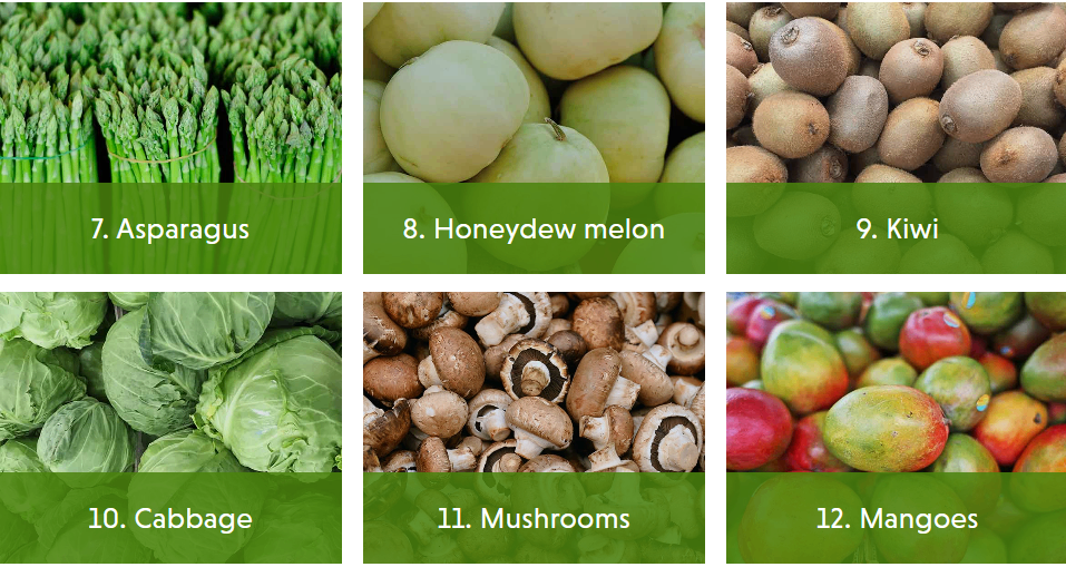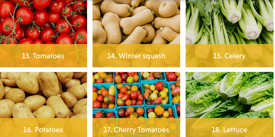 这19个项目包括在美国农业部和美国食品和药物管理局的水果和蔬菜测试数据中,但不属于“12种肮脏食品”或“15种清洁食品”名单。