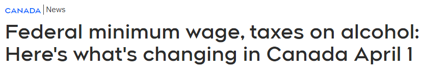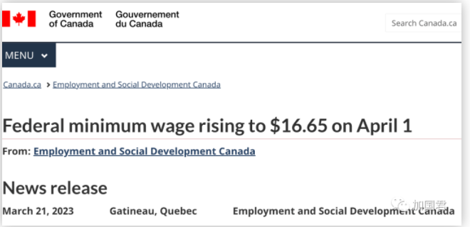 受联邦监管的私营部门雇主必须根据新工资率调整其工资单信息,以确保从 4 月 1 日起支付工人和实习生每小时最少16.65加元的的工资。
