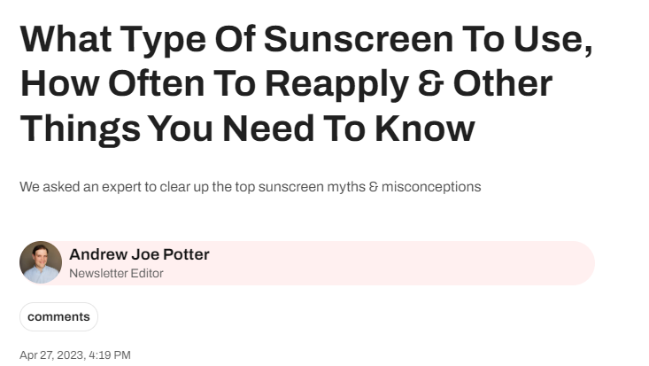 事实:防晒霜是日常护肤程序的重要组成部分, 这意味着根据你的生活方式和皮肤敏感性选择最好的防晒霜和SPF是在今年春夏度过美好户外时光的关键。